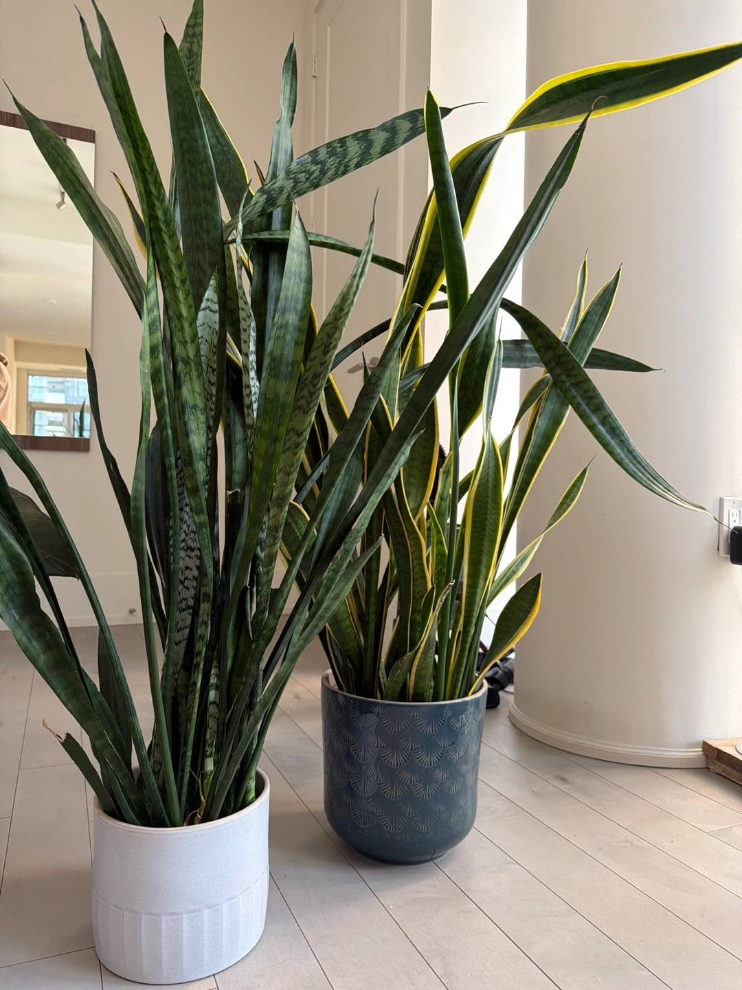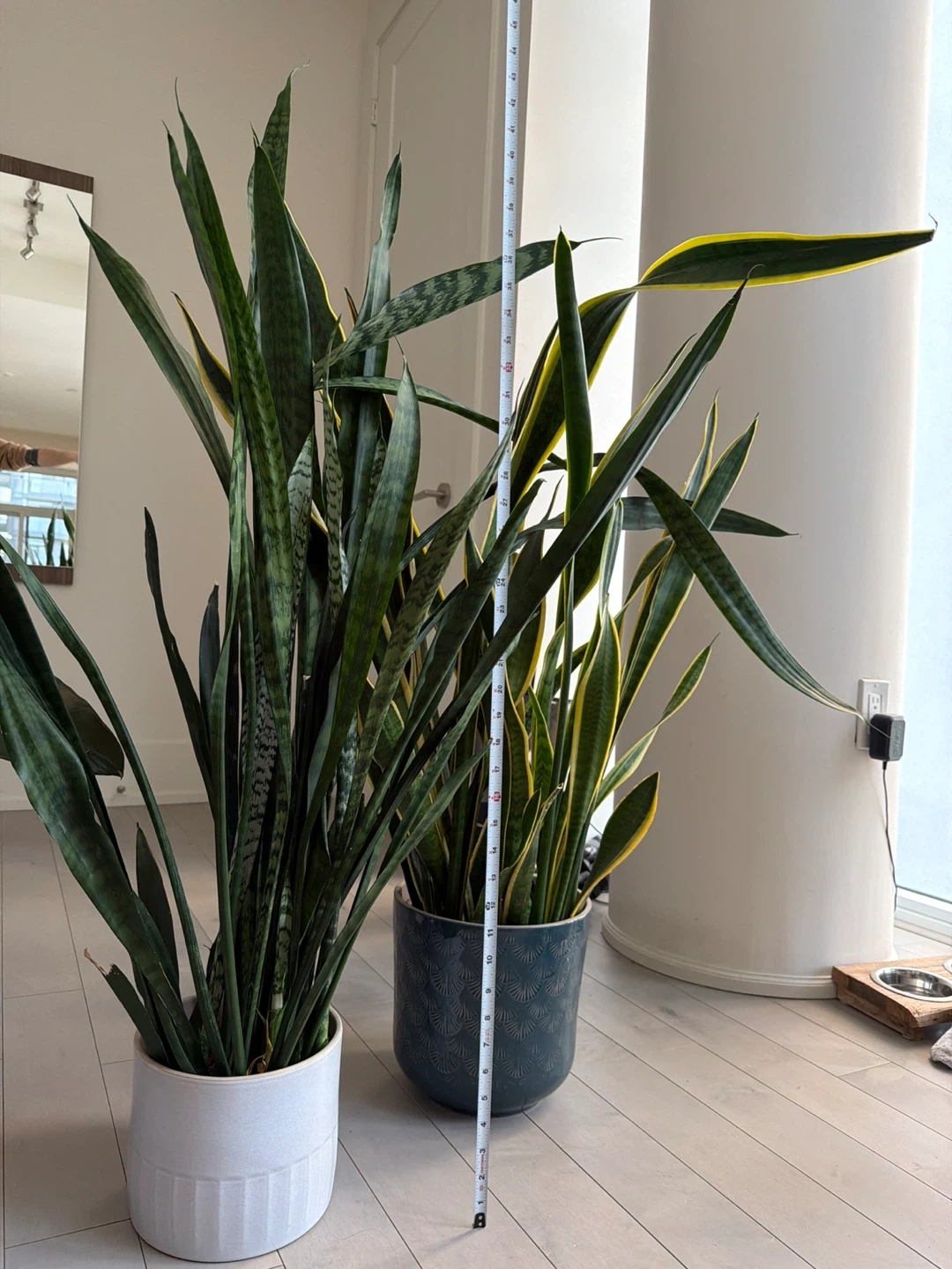 351$80 for both Two healthy snake plants for sale! One is approximately 44 inches tall, and the other is about 36 inches tall. They're both potted and ready to brighten up your space