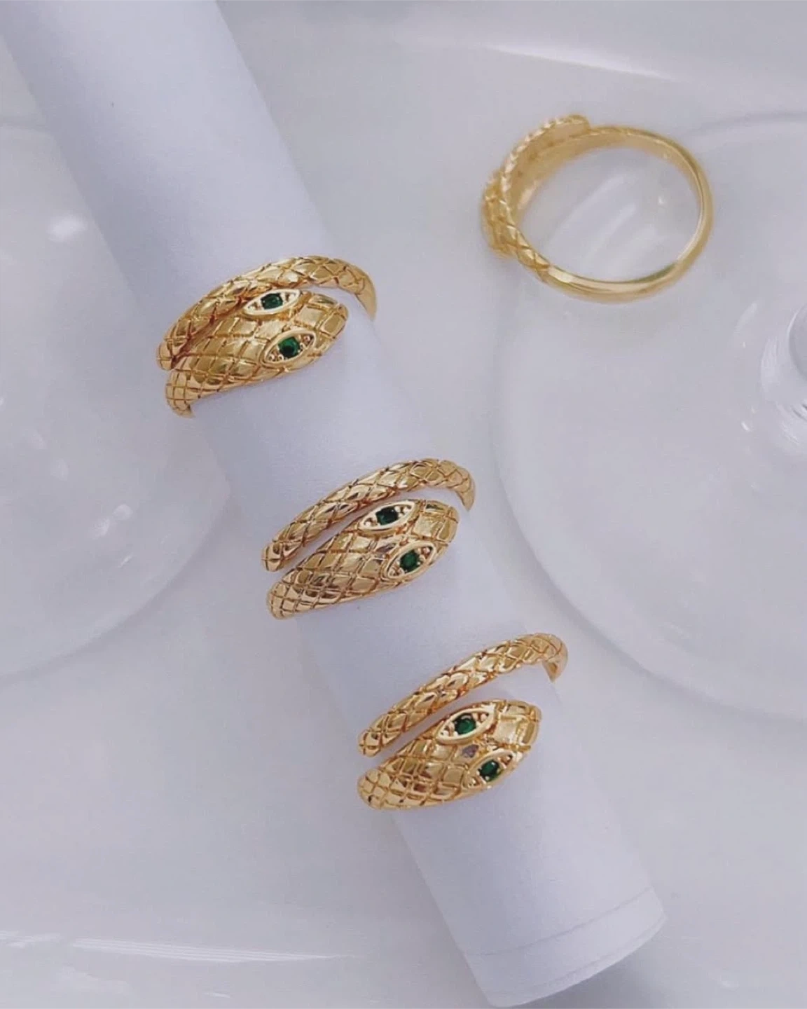 70Selling a stylish snake-style ring! It's gold plated and adjustable, so it should fit most fingers. It's in great condition and ready for a new home