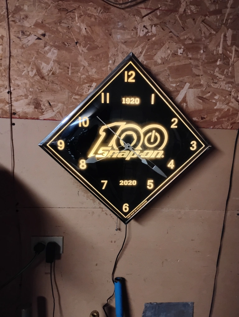 Selling a Snap-on 100th Anniversary diamond-shaped clock. It commemorates 100 years of Snap-on from 1920 to 2020. This clock would be perfect for a garage or shop!