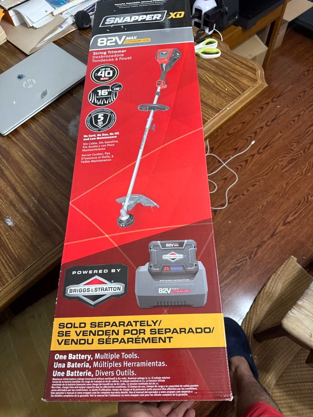 Selling a brand new Snapper XD 82V String Trimmer, still in its original box! This powerful trimmer is powered by Briggs & Stratton and boasts an 82V lithium-ion battery. It can cut up to 40 cm (16 inches) wide. Get ready for powerful, dependable, and advanced performance!