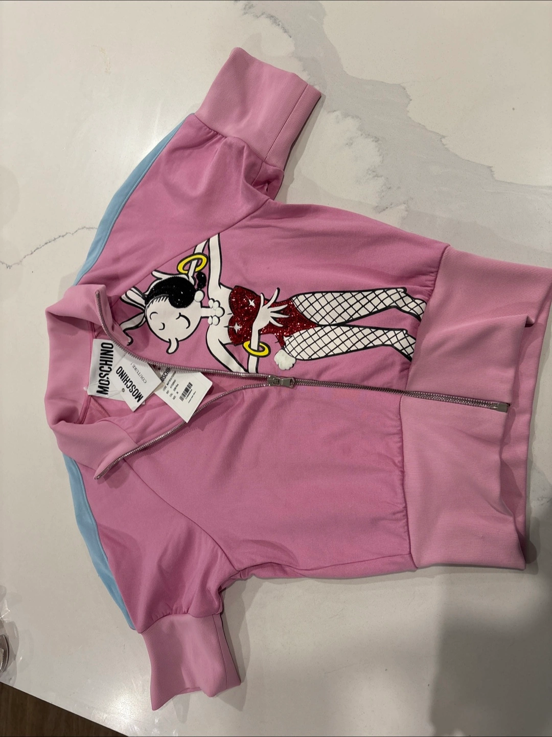 Moschino Pink Bunny Zip-Up Short Sleeve Top