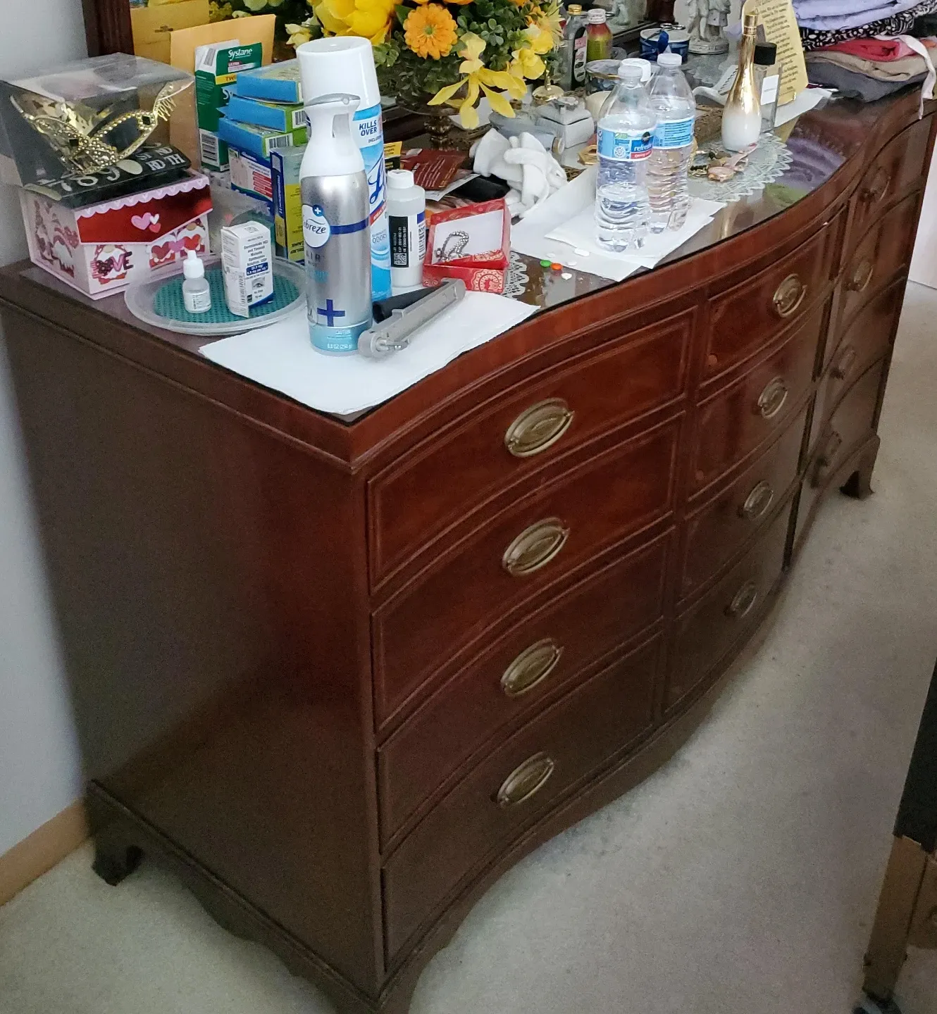 Curved Cherry Wood Dresser with 10 Drawers