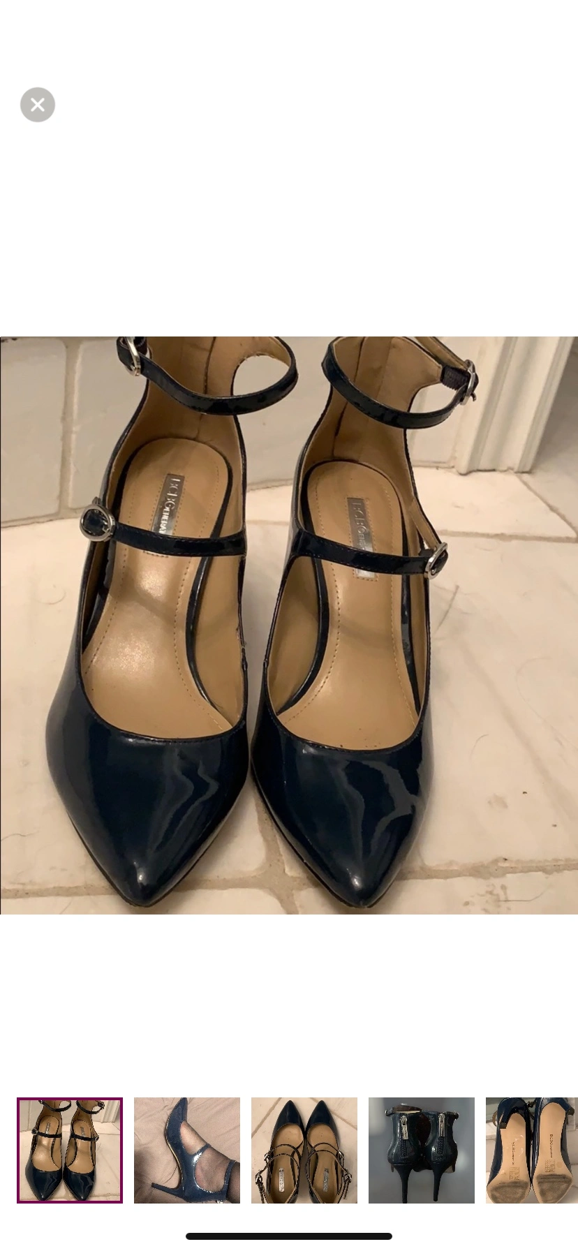 Navy blue heels with double straps and a pointed toe. Back zipper closure. Very sexy shoe.