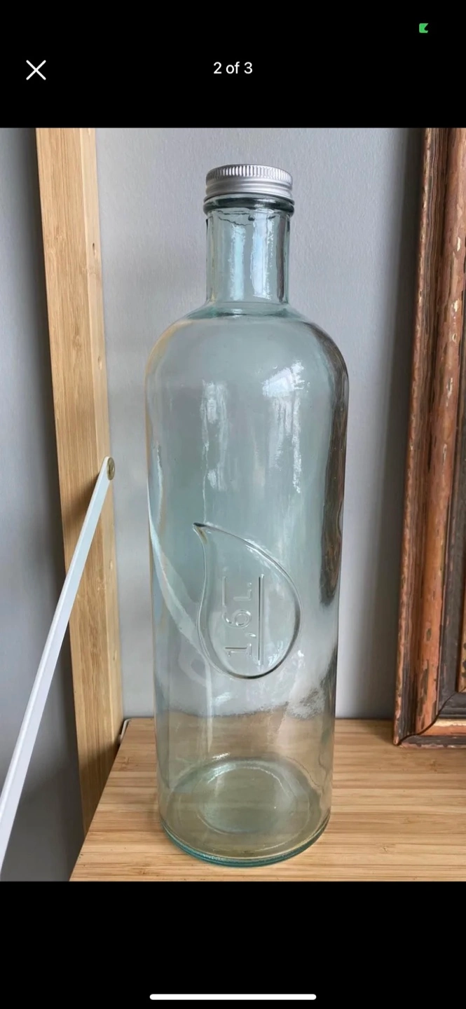 Very large 1.6 liter glass bottle with aluminum screw-top lid.
