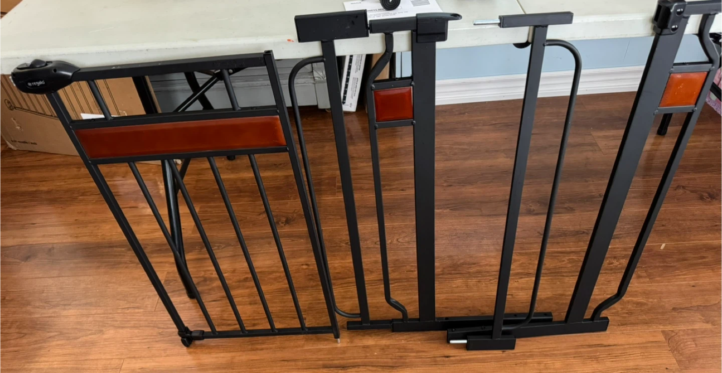 Selling a Regalo Home Accents Extra Wide Metal Walk-Through Safety Gate! It's in great condition and fits openings 30"-42" wide. Perfect for keeping your little ones safe and sound. Assembly is required, and all the necessary components are included in the box.