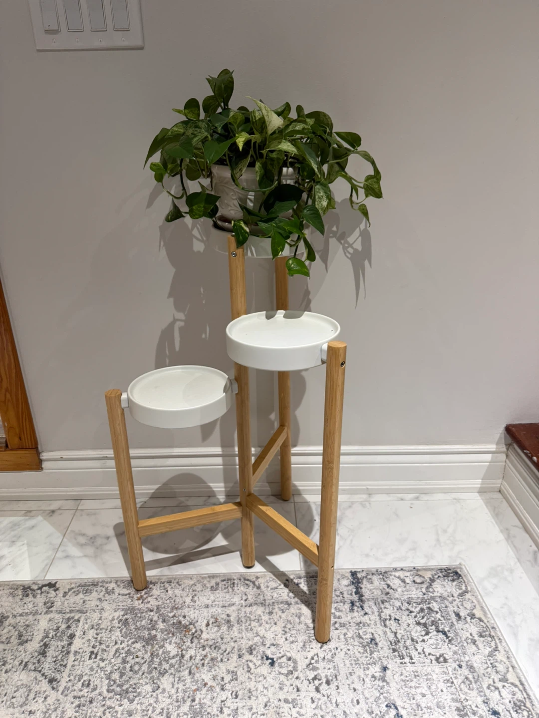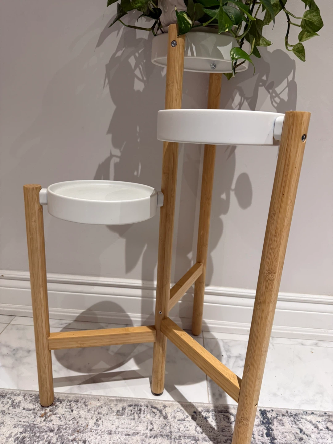 selling an IKEA Satsumas plant stand! It's in great condition and ready to display your favourite plants. This stand has three tiers, perfect for creating a layered effect with different plant heights. It's a stylish and functional addition to any room