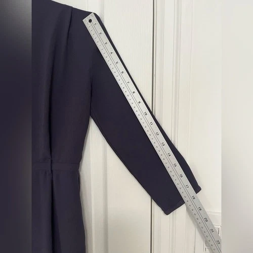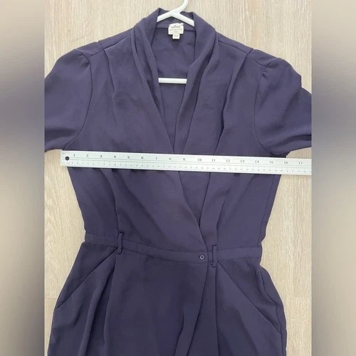 This elegant purple dress is perfect for any occasion. Its sleek design offers a flattering fit, making it a versatile addition to your wardrobe. In good pre-owned condition.