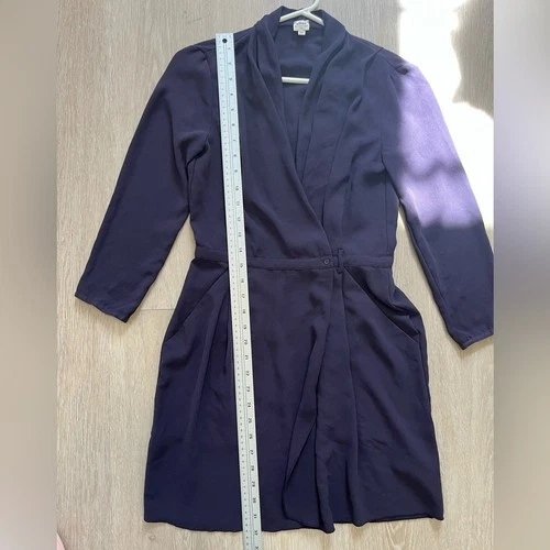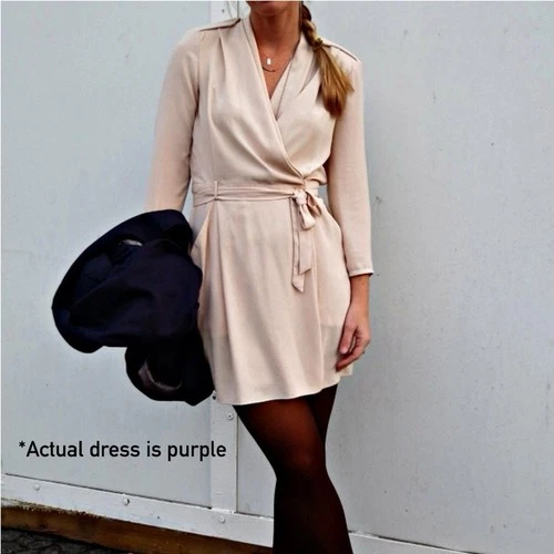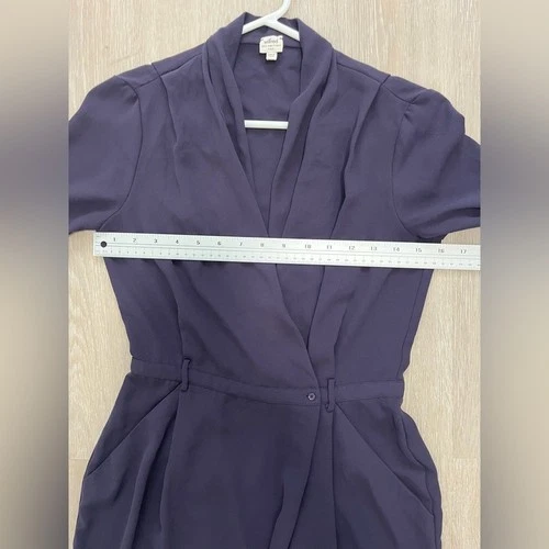 This elegant purple dress is perfect for any occasion. Its sleek design offers a flattering fit, making it a versatile addition to your wardrobe. In good pre-owned condition.