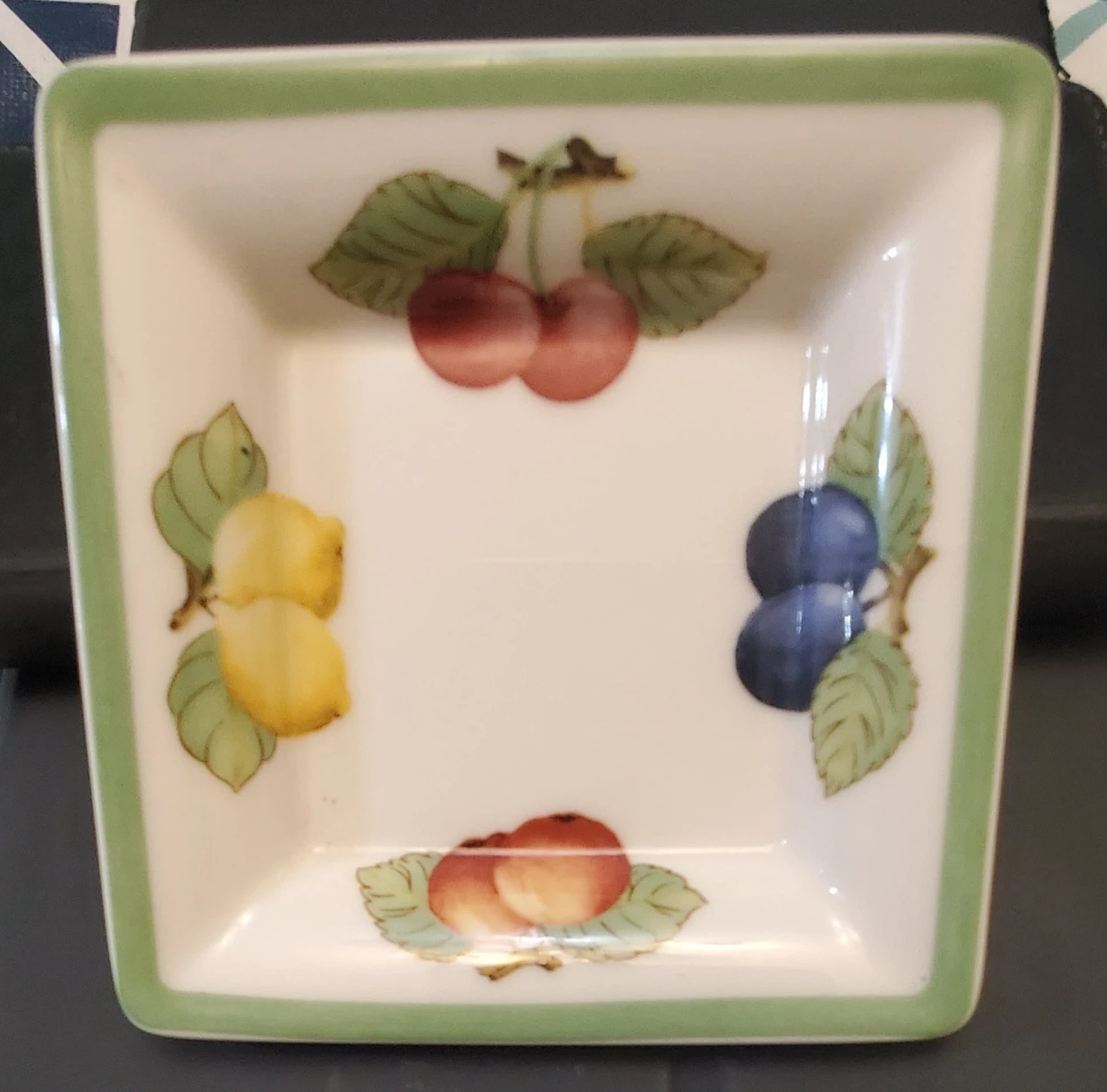 Selling a cute Villeroy & Boch square dish! It features a lovely fruit design and is in great condition. Perfect for adding a touch of charm to your table or as a decorative piece