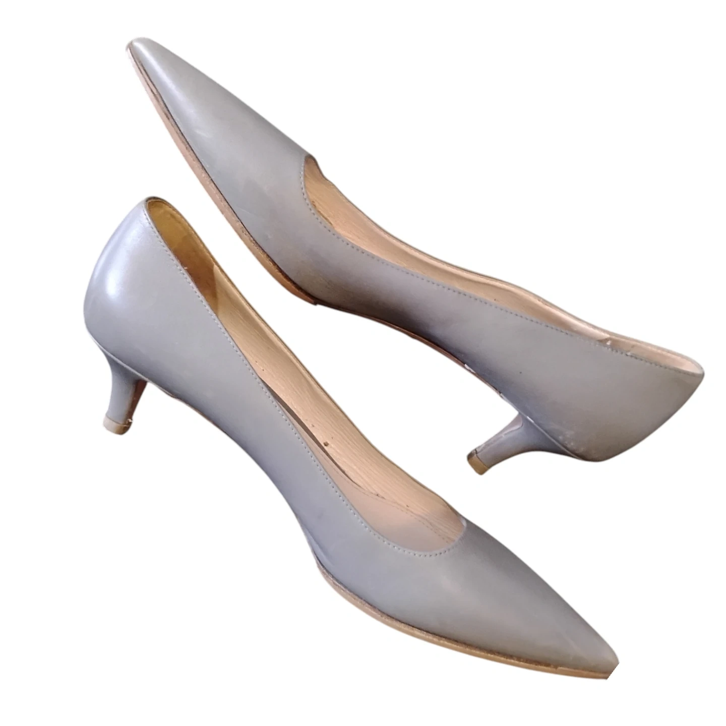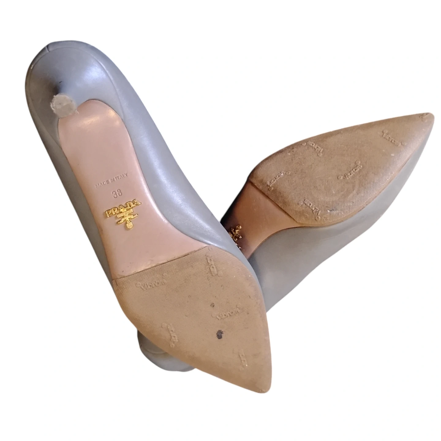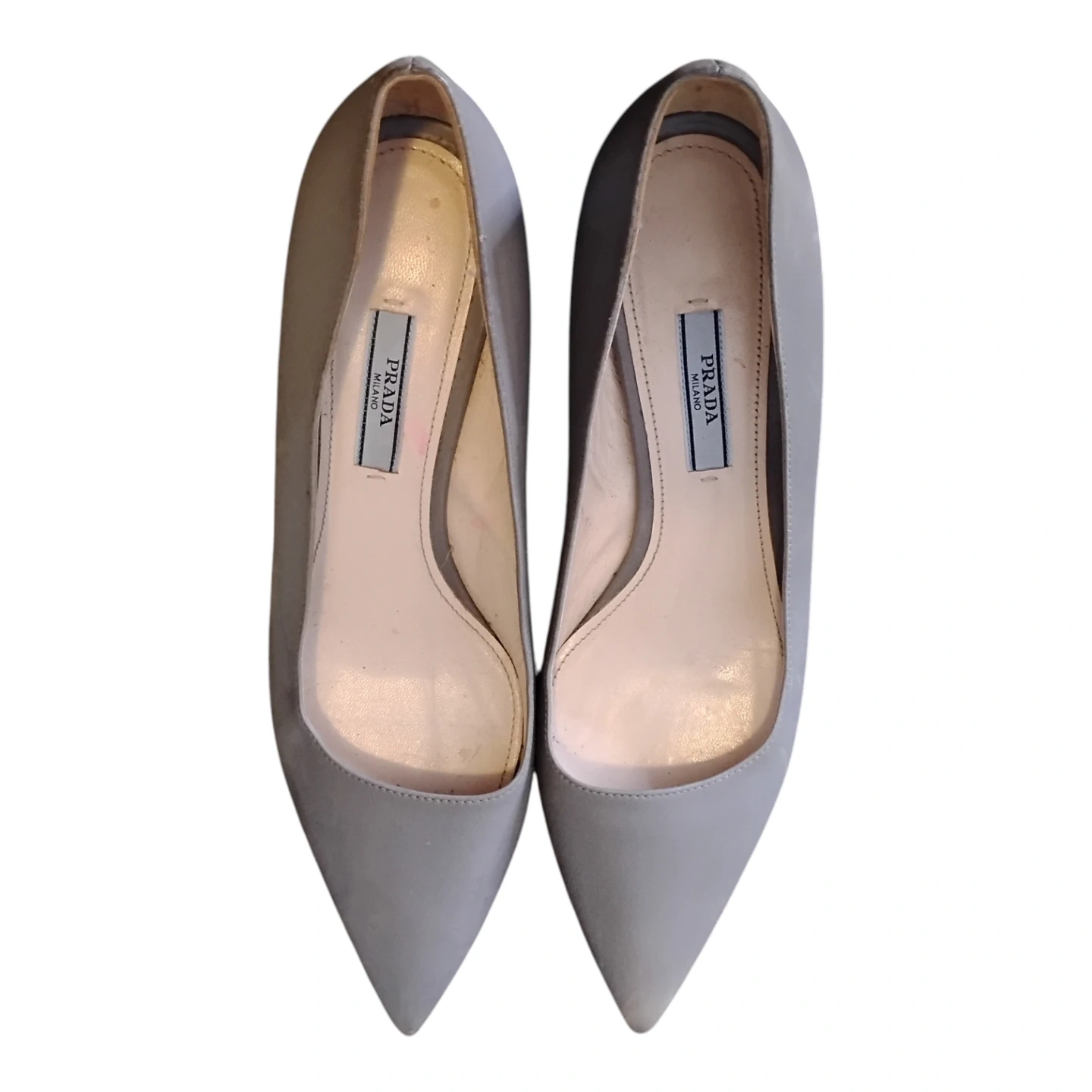 Prada leather pumps made in Italy. Size 38. Size US 7.5 These stylish grey heels feature a pointed toe and a classic silhouette.