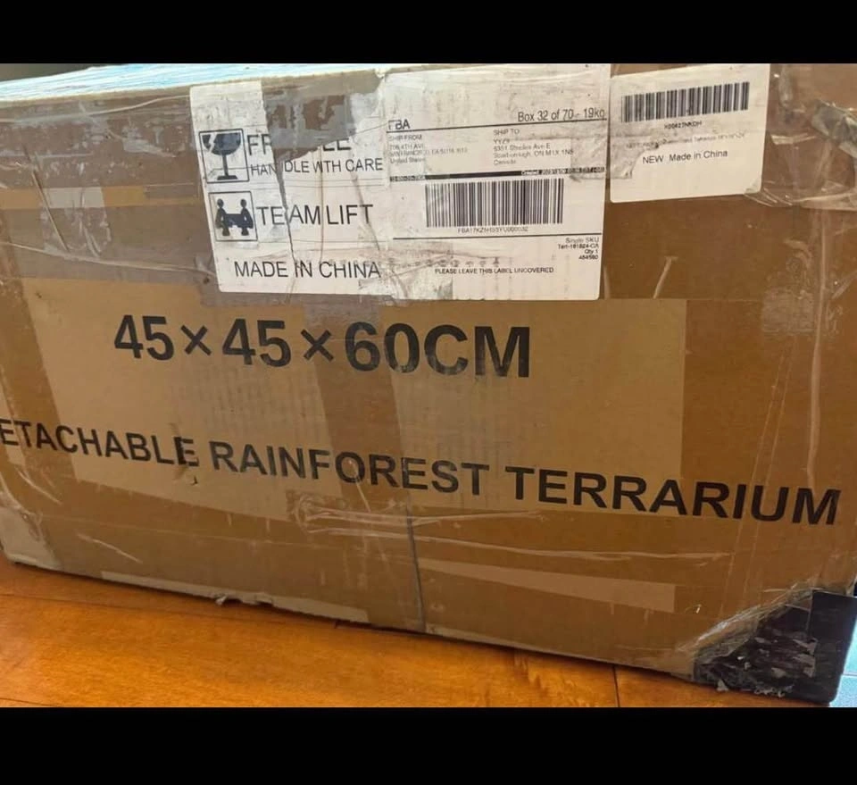 The NEPTONION 32-gallon (18"x18"x24" H) glass terrarium is a durable, front-opening habitat featuring high-quality tempered glass, a secure knob lock, and a waterproof base. Designed for reptiles, amphibians, and invertebrates, it includes a removable, ventilated metal screen top with cable management slots. The unit is easy to assemble, featuring a knock-down design, and is supported by a heat-resistant aluminum alloy frame. Brand new in the box!