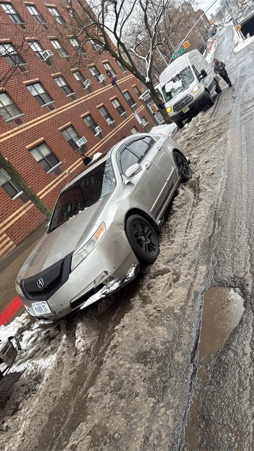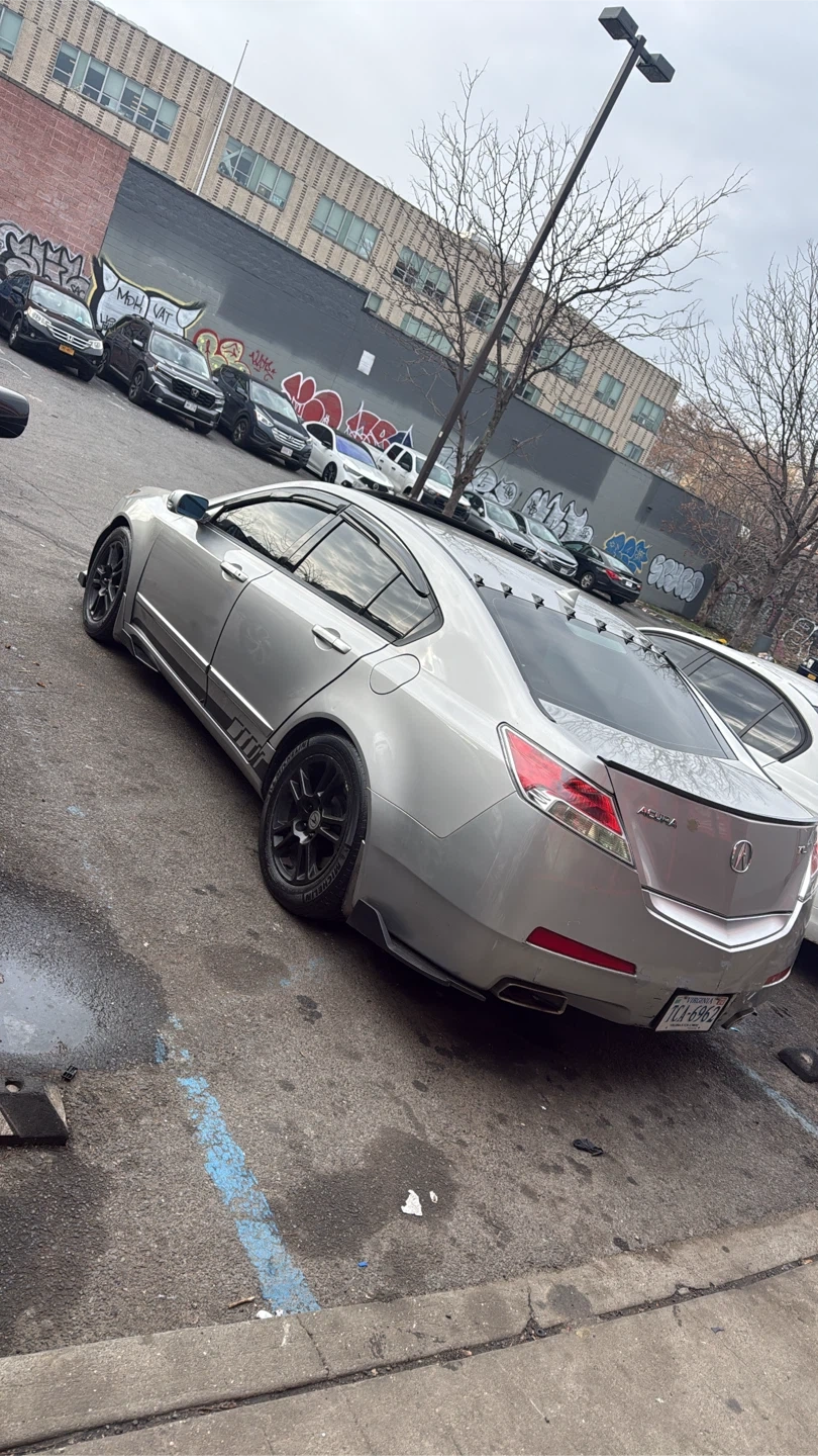 Silver four-door sedan. It's an Acura TL model with black rims. The car has a sleek design and sporty accents. Drives fantastic 220k on the body brain is around 156k new EVERYTHING interior 7/10