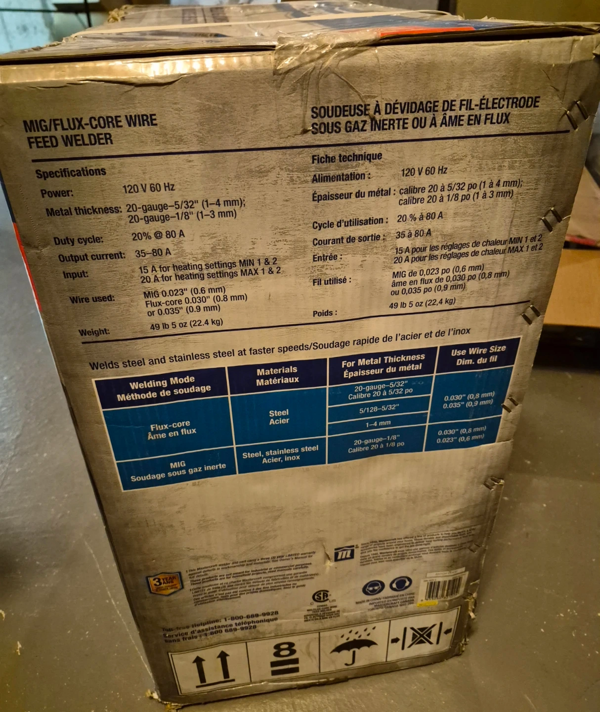 *BRAND NEW* IN SEALED BOX with warranty. Retails $740+tax (model MIG 130+cart).