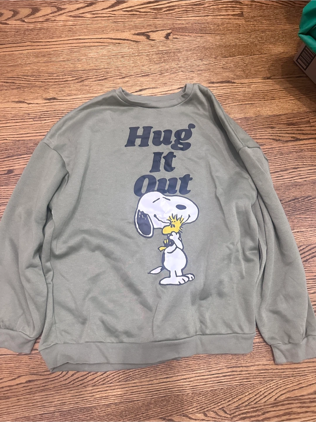 94Cozy Snoopy sweatshirt featuring the phrase 'Hug It Out'! It's in great condition and ready for a new home