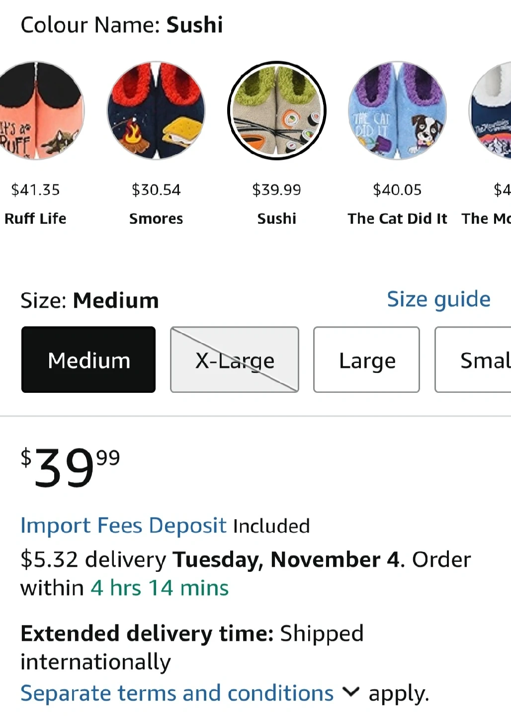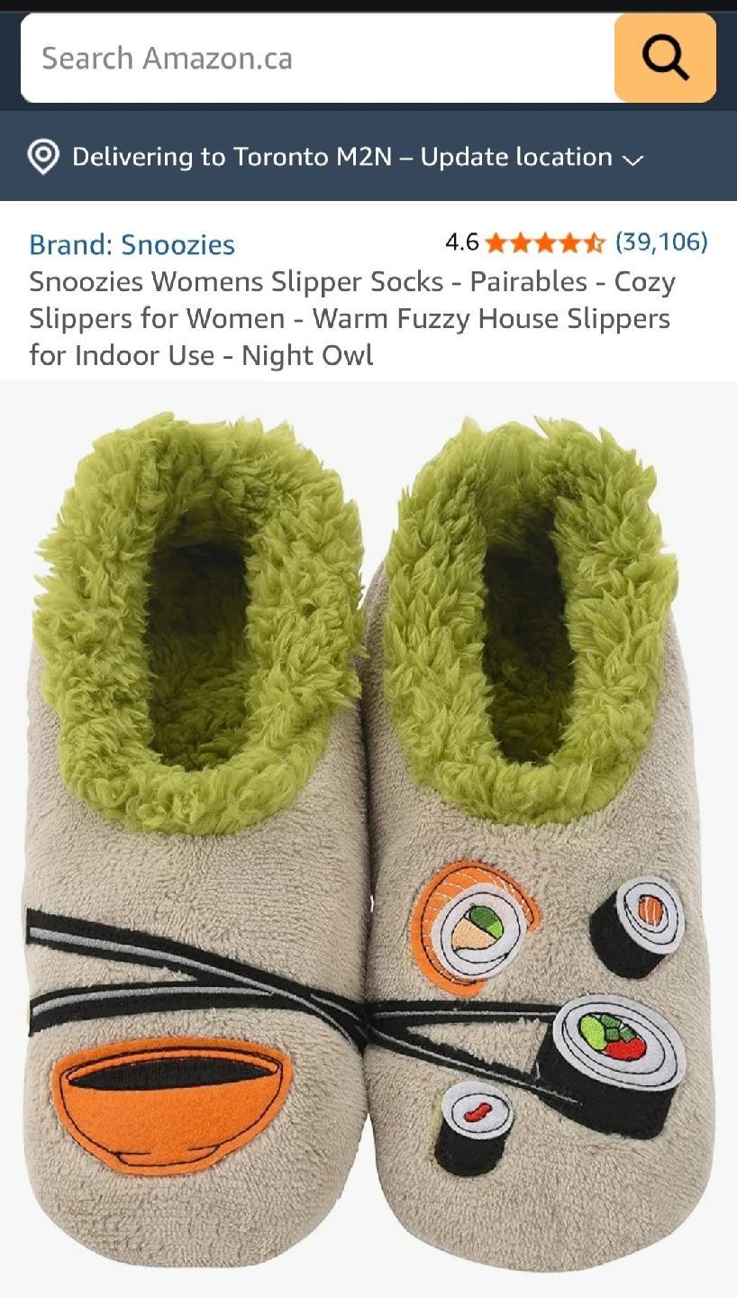 Keep your feet cozy with these BRAND NEW adorable Snoozies! slippers. They're a size medium (7/8 women's)) and feature a fun sushi design. They have non-skid soles, too! They're $40 plus shipping and taxes on Amazon, so what I'm asking is a great deal! All my items for sale are from a clean, pet and smoke-free home. Pickup location is at Leslie and 401/Sheppard near North York Ikea. Please check out my other postings for a bundle deals. Thanks for looking and happy shopping!