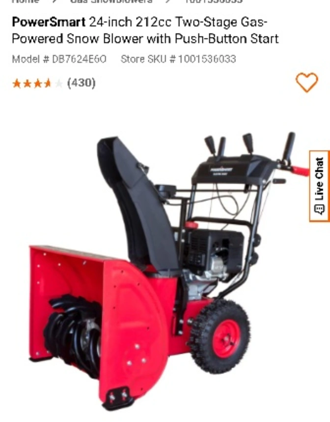 selling this snowblower, bought last year and only used a few times for one season it is in as-is condition. starts and runs great shoot me your offer bought from home Depot: https://www.homedepot.ca/product/powersmart-24-inch-212cc-two-stage-gas-powered-snow-blower-with-push-button-start/1001536033