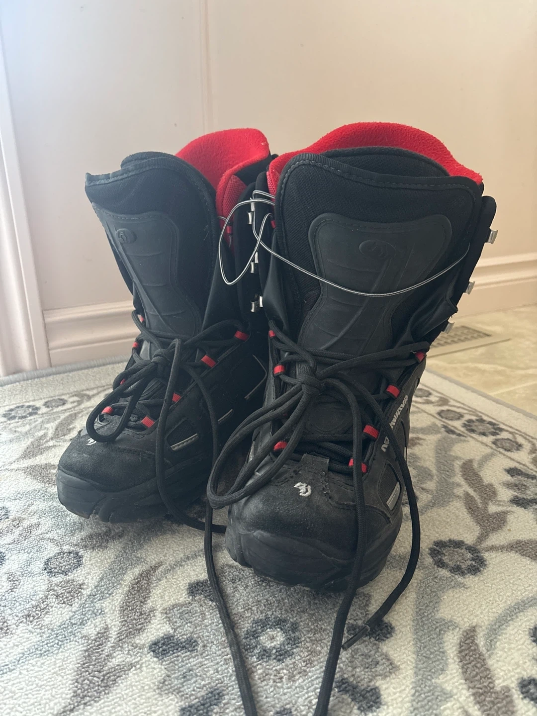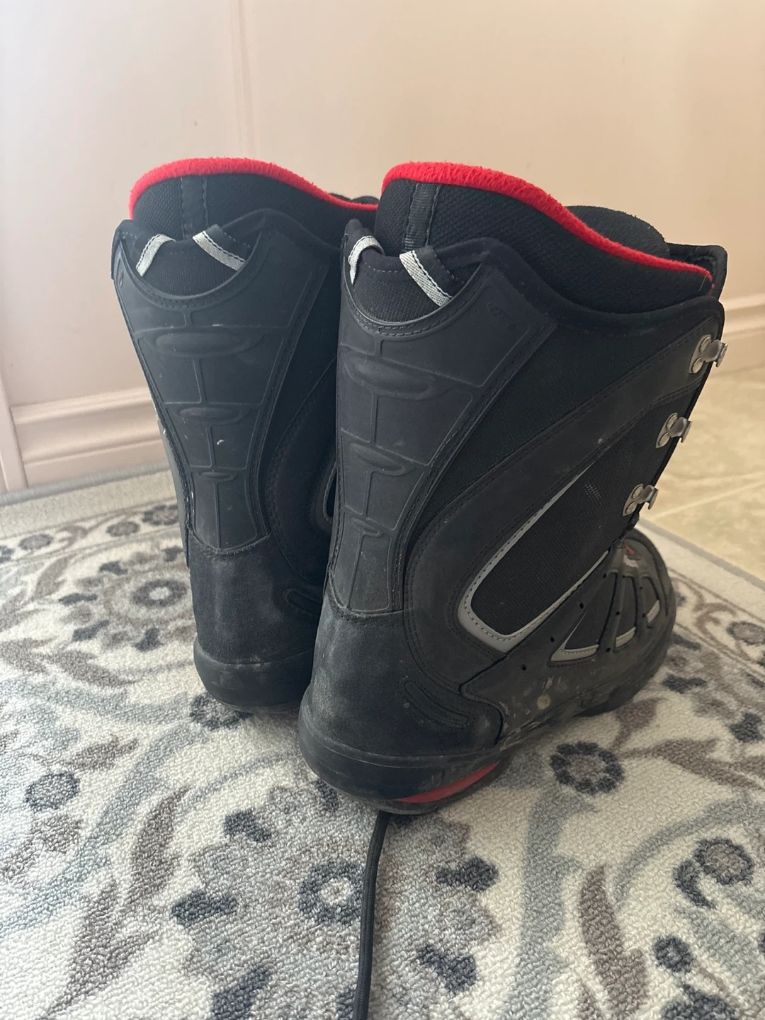 15Selling a pair of Lamar snowboard boots in size 9 US male. They're black with red accents and in good used condition. Perfect for hitting the slopes!