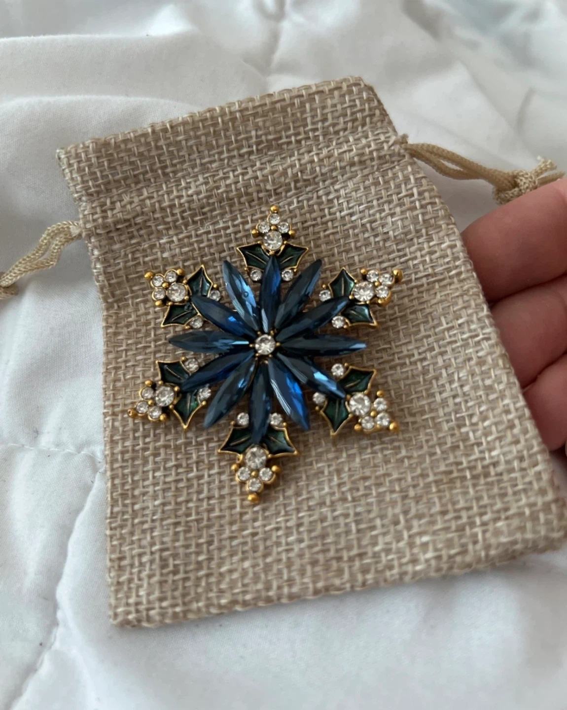 90Selling a beautiful snowflake brooch! It features a lovely combination of blue and gold tones, perfect for adding a touch of sparkle to any outfit. Comes with its original pouch