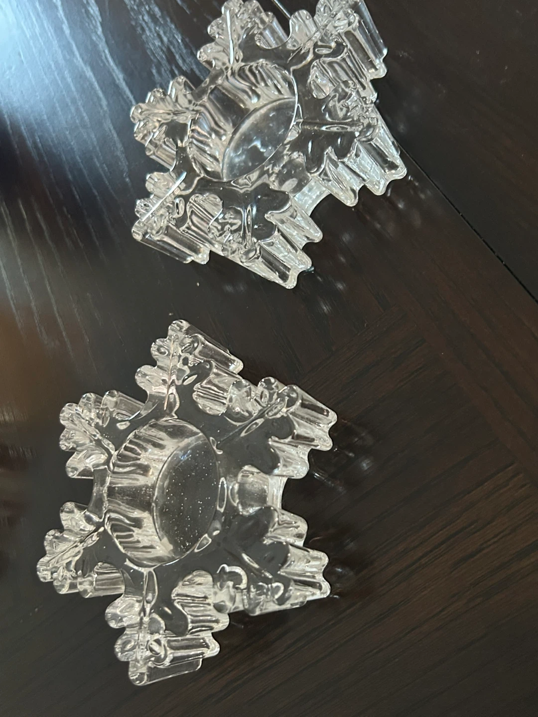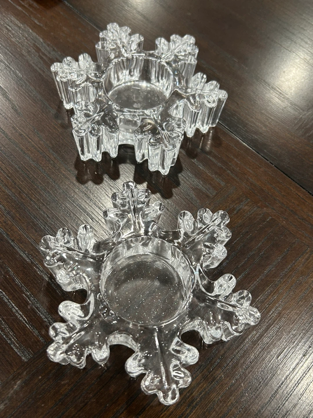 23Selling a set of two clear Quality Glass snowflake candle holders. They’re in great shape and perfect for adding a touch of winter charm to your home decor