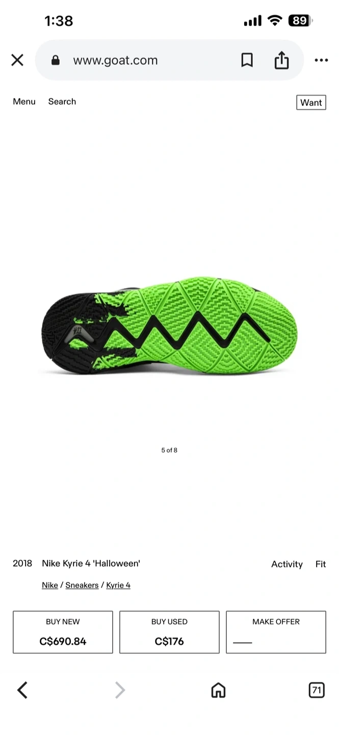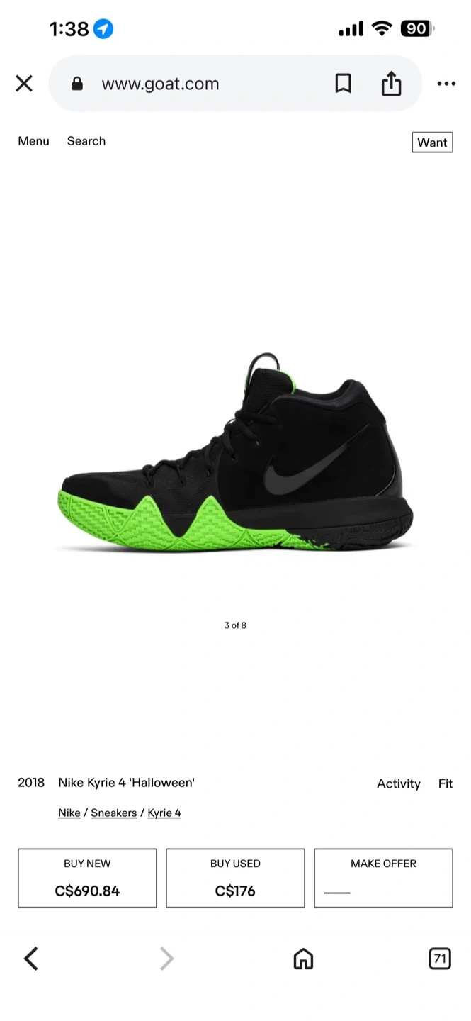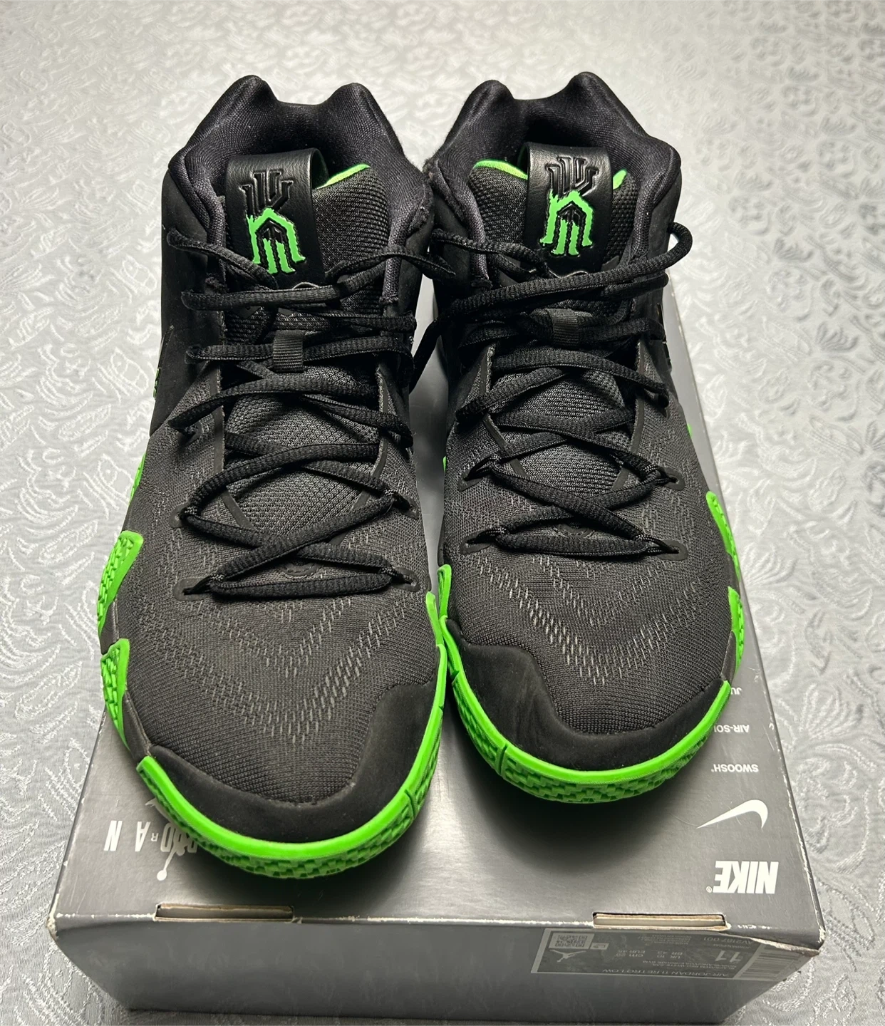 Buy & SellNike Kyrie 4 "Halloween" Basketball ShoesNike Kyrie 4 "Halloween" Basketball Shoes$171Nike Kyrie 4 "Halloween" basketball shoes. Black with neon green accents. Includes original box. Size is not visible on item.SizeMens size 10/ Women’s 11.5/12BrandNikeWHERE TO MEETPolice stationView MapSELLERverifiedMelBrampton E750 reviews0 chats·0 favorites·23 viewsSEND CHAT TO SELLERHi Mel! I’m interested in your listing.Hi Mel! I’m interested in your listing.Get the Karrot app to chatSign In to chat