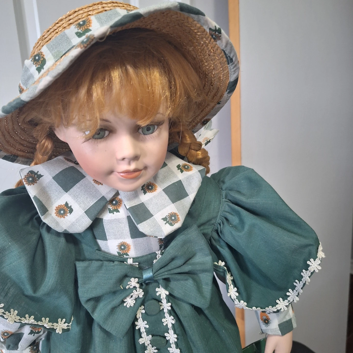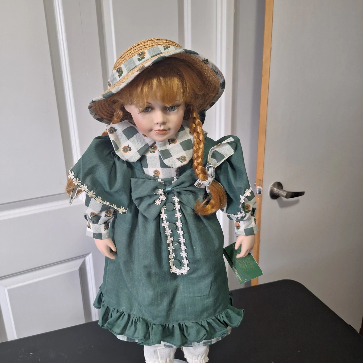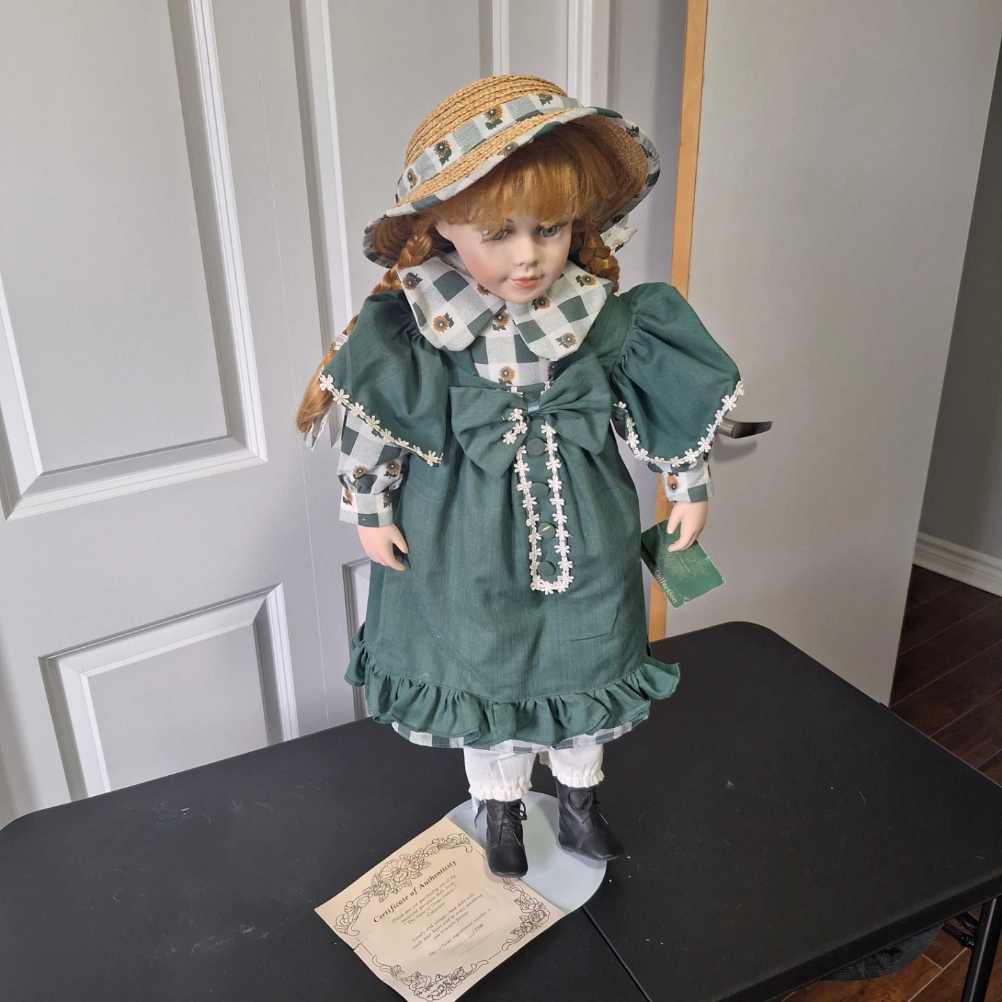 Selling a beautiful porcelain doll from The Grace Collection. She's wearing a lovely green dress and hat. Comes with a certificate of authenticity. A treasure forever!
