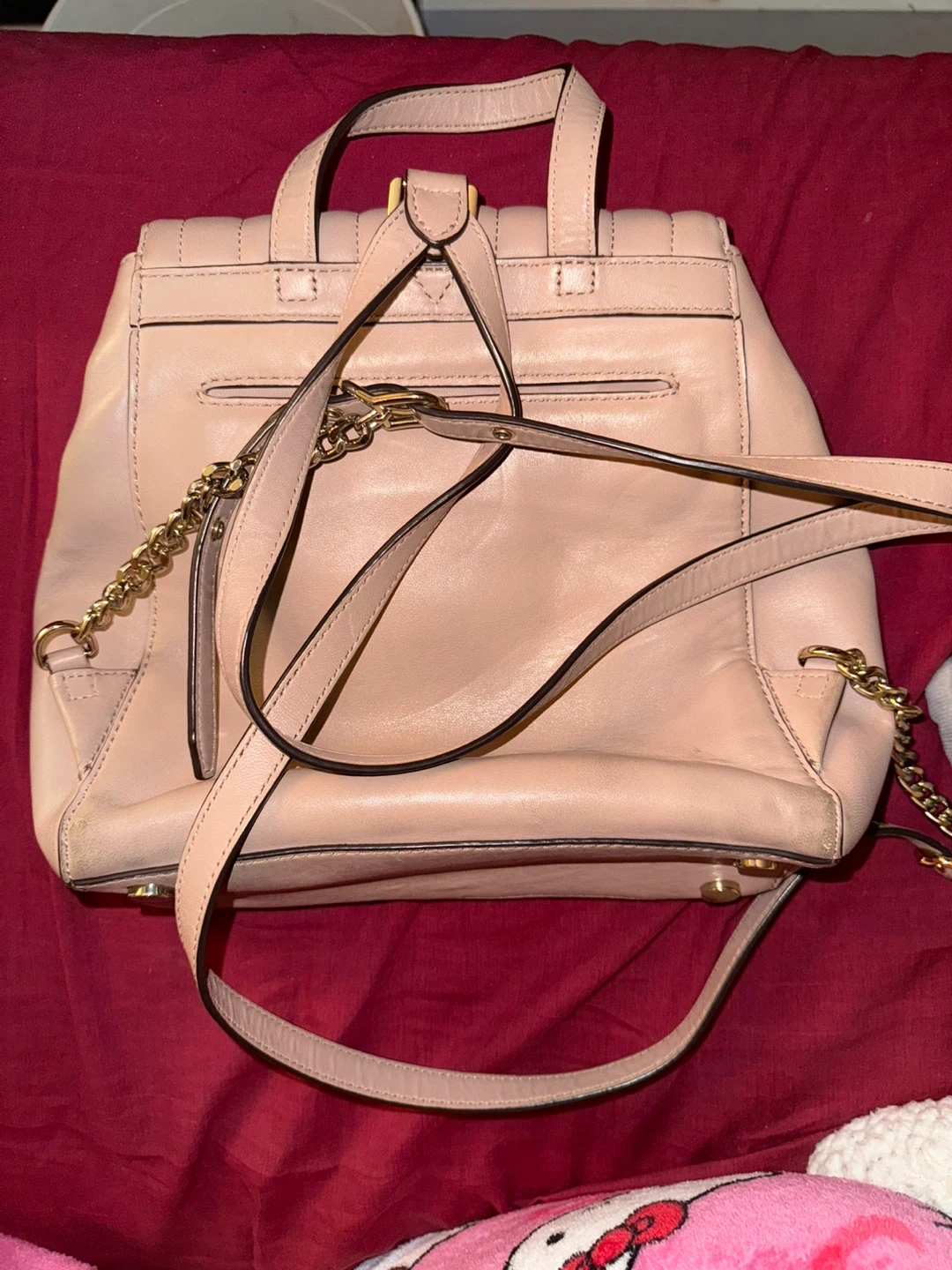 Selling a cute Michael Kors backpack in a lovely pink leather! It’s in great condition, perfect for everyday use or a stylish outing. It features a unique quilted design on the front flap and gold-tone hardware. The interior is spacious with a zippered pocket for your valuables. A stylish and functional bag!
