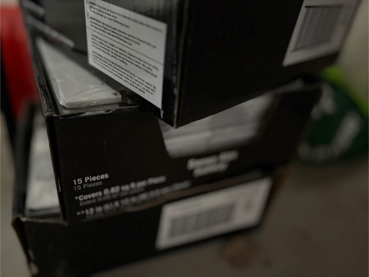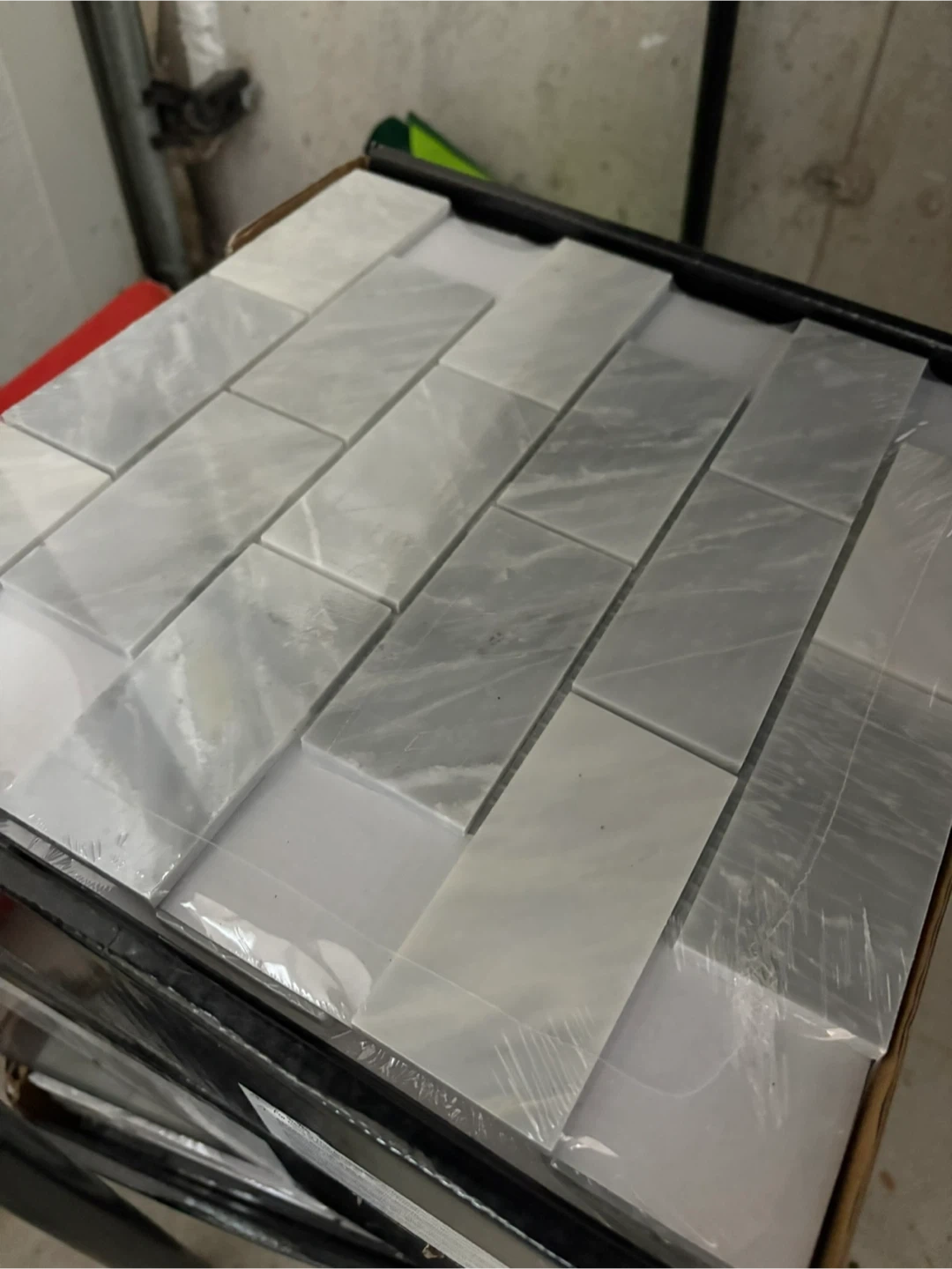 3 packs of 15 Snowy Alps Subway stone tiles. Each tile measures 12 in x 12 in x 6 mm thick. They cover 0.82 sq ft per piece. They're suitable for various home improvement projects. Great for backsplash.