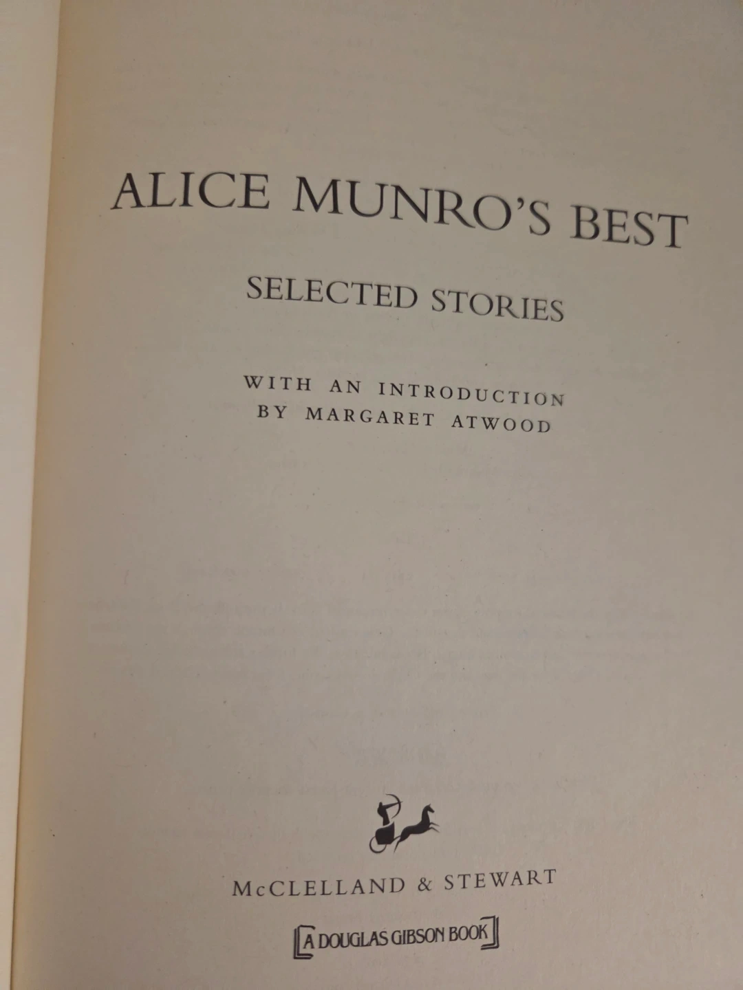 This is a collection of selected stories by Alice Munro, with an introduction by Margaret Atwood. It's published by McClelland & Stewart and Douglas Gibson Books. The book includes stories like "Royal Beatings" and "Runaway."