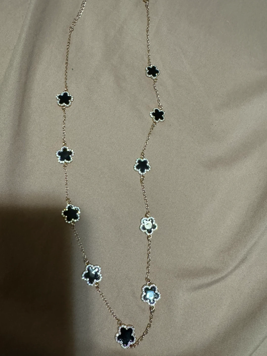 Selling a Van Cleef & Arpels Alhambra necklace! It features the iconic clover motif in black and gold. A timeless piece that adds a touch of elegance to any outfit