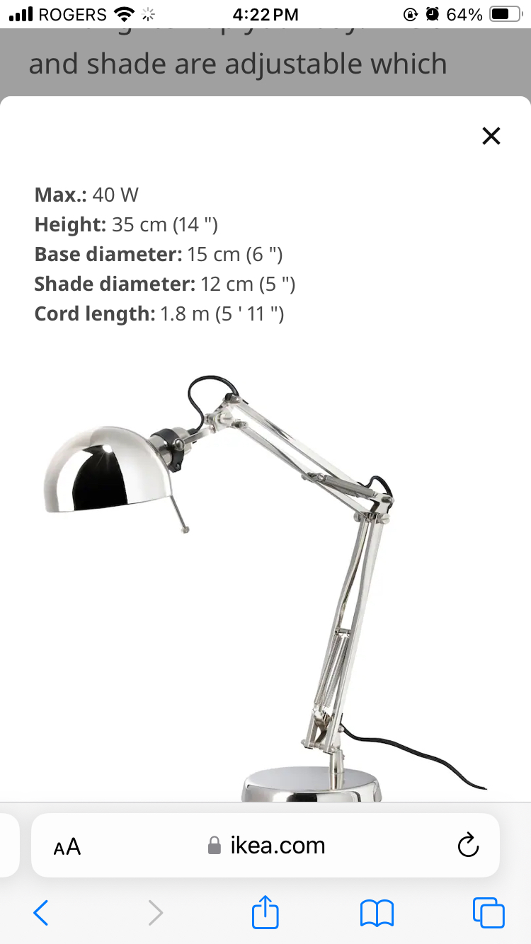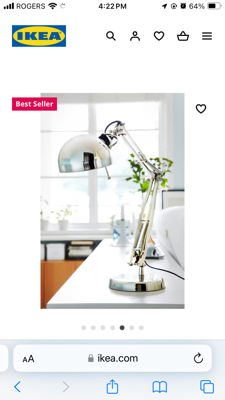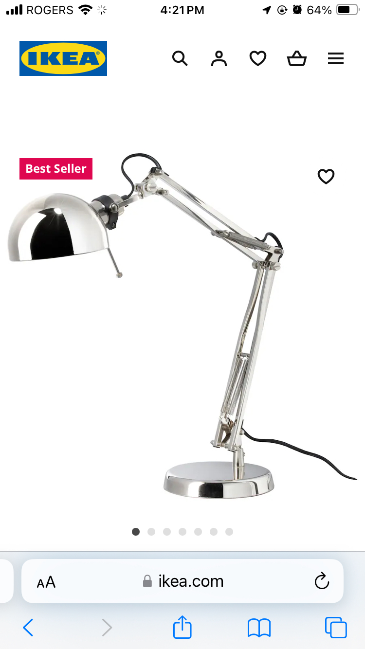 Buy & SellIkea desk lampIkea desk lamp$20Pick up only. Downtown location. In great condition. Includes working light bulb. Ikea Forsa nickel plated work lamp.ConditionLike newWHERE TO MEETOutsideView MapSELLERJoeDowntown433 reviews2 chats·3 favorites·71 viewsSEND CHAT TO SELLERHi Joe! I’m interested in your listing.Hi Joe! I’m interested in your listing.Get the Karrot app to chatSign In to chat