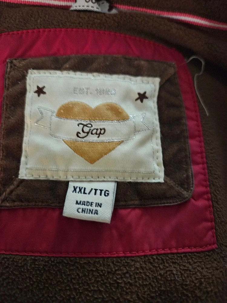 Selling a Girls Gap puffer jacket in brown. The size is XXL. It's in great condition and perfect for keeping warm during the colder months! It is a real warm jacket. Good for an 8 year old to 10 year old (depending on size of child).