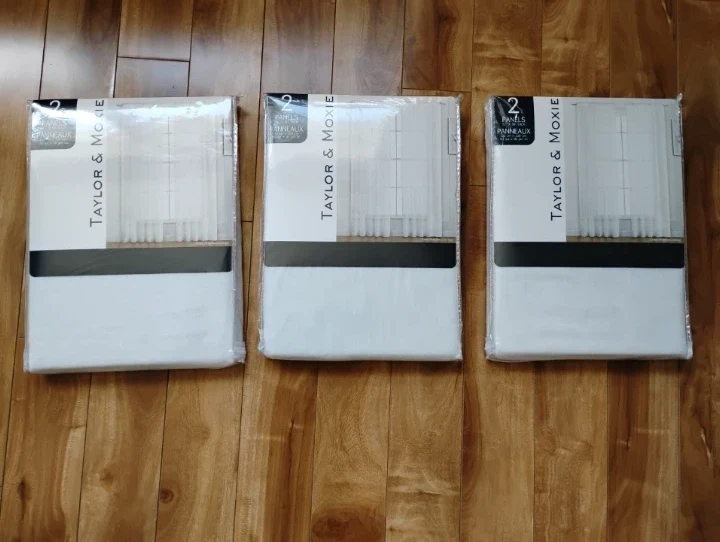 Taylor & Moxie white curtain panels. Each panel measures 52" x 90".