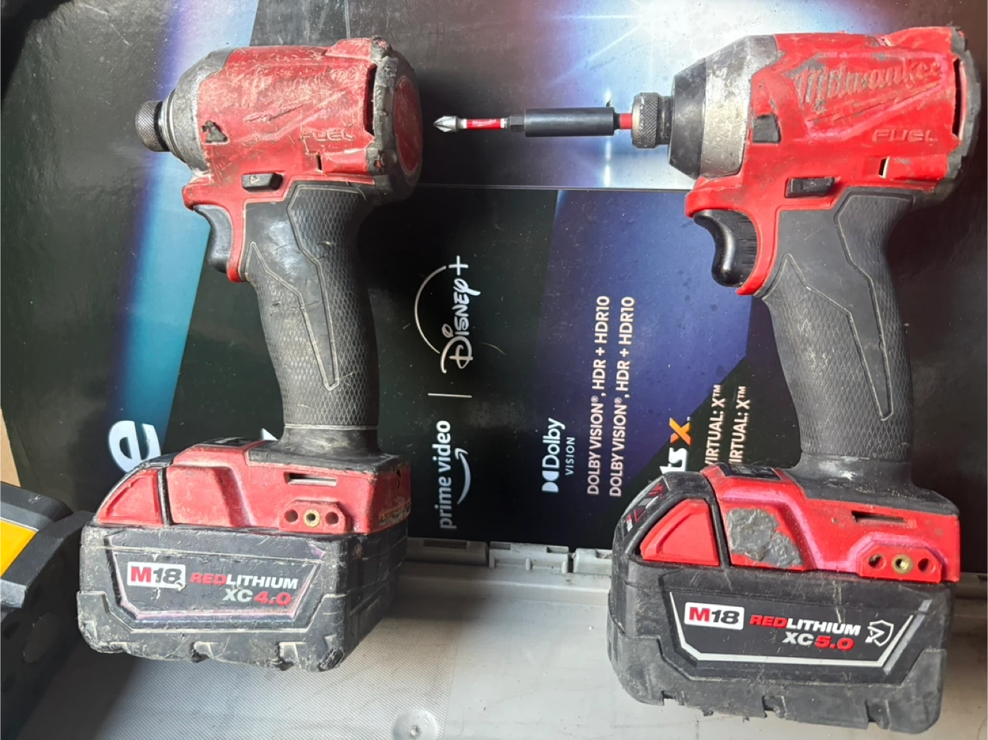 Selling a pair of Milwaukee FUEL impact drivers. One is an M18 REDLITHIUM XC 4.0 and the other is an M18 REDLITHIUM XC 5.0. Both have signs of use but are in good working condition!