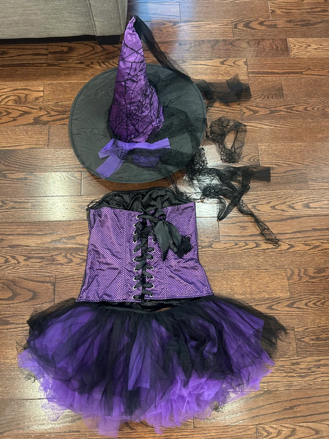 Selling a Spirit Black Label Spider Witch adult costume. It's a size Large (10-12). Costume includes the bustier, tutu, and hat.