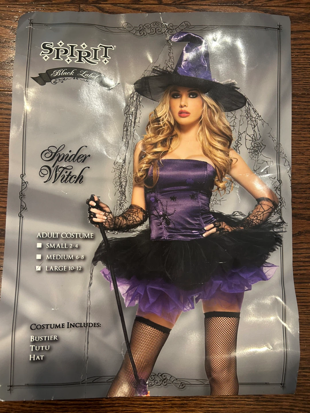 Selling a Spirit Black Label Spider Witch adult costume. It's a size Large (10-12). Costume includes the bustier, tutu, and hat.