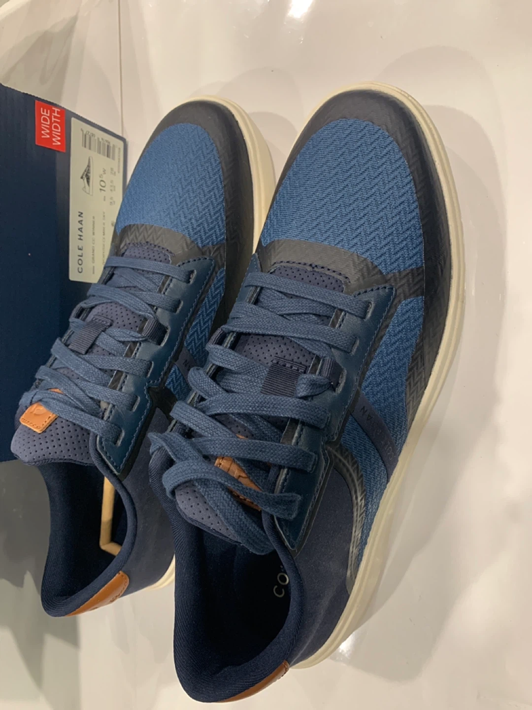 Selling a pair of Cole Haan Grand Crosscourt sneakers in size 10.5. They're in great condition and come with the original box. These sneakers are perfect for everyday wear and offer a stylish, comfortable fit!