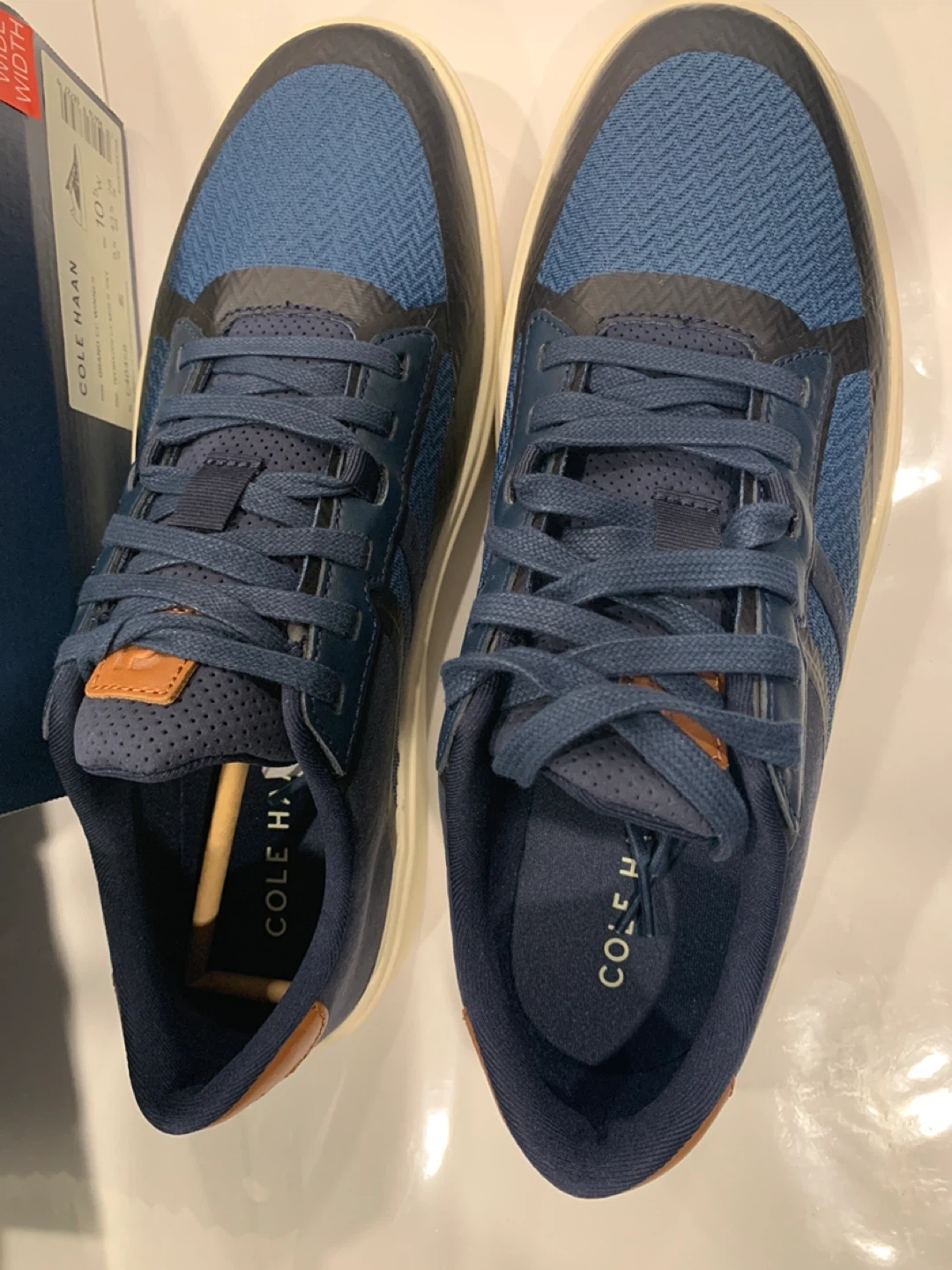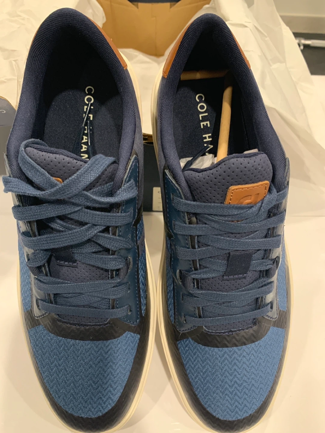Selling a pair of Cole Haan Grand Crosscourt sneakers in size 10.5. They're in great condition and come with the original box. These sneakers are perfect for everyday wear and offer a stylish, comfortable fit!