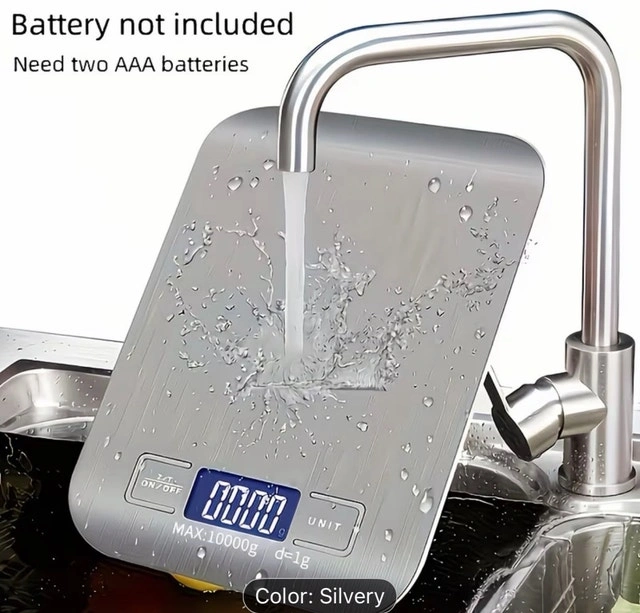 Measure ingredients with precision using this digital kitchen scale, capable of weighing up to 10kg with 1g accuracy, and featuring a sleek silver finish! This kitchen scale is in very good condition and ready for your culinary adventures. Its slim design allows for easy storage, and the clear LCD screen ensures easy reading. Key features: Maximum weight capacity: 10kg, Accuracy: 1g, Material: Stainless steel, Display: LCD, Units: g, oz, lb, ml. Feel free to message if you have any questions!