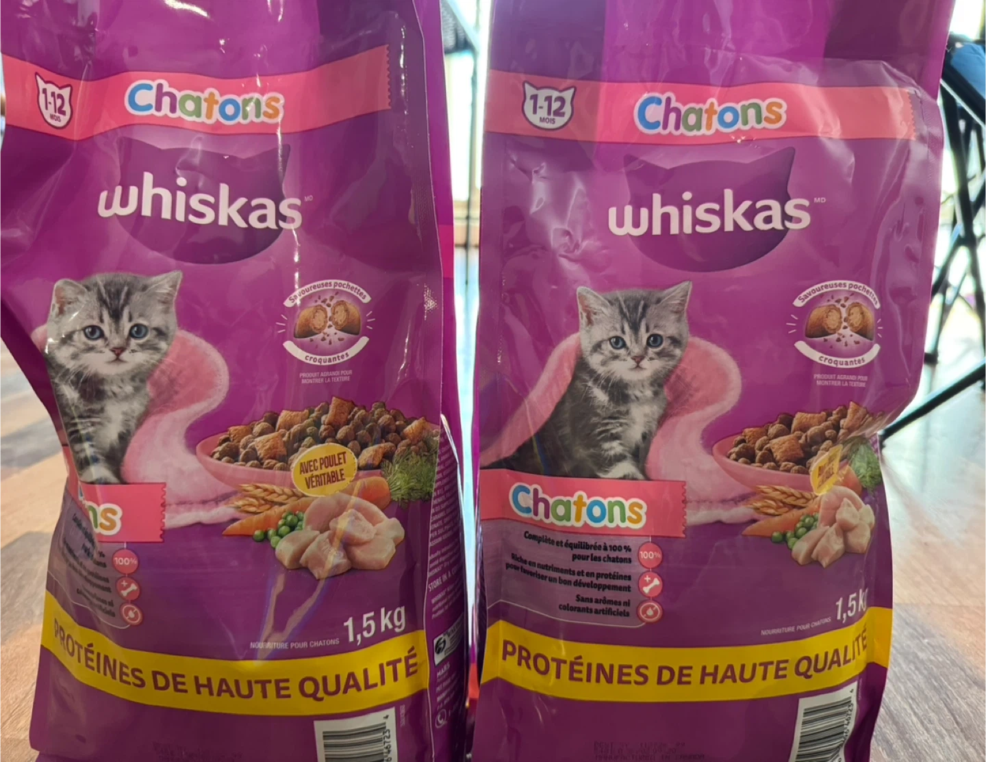 Selling Whiskas dry food for kittens (1–12 months). Each bag is 1.5 kg and sealed, fresh condition.