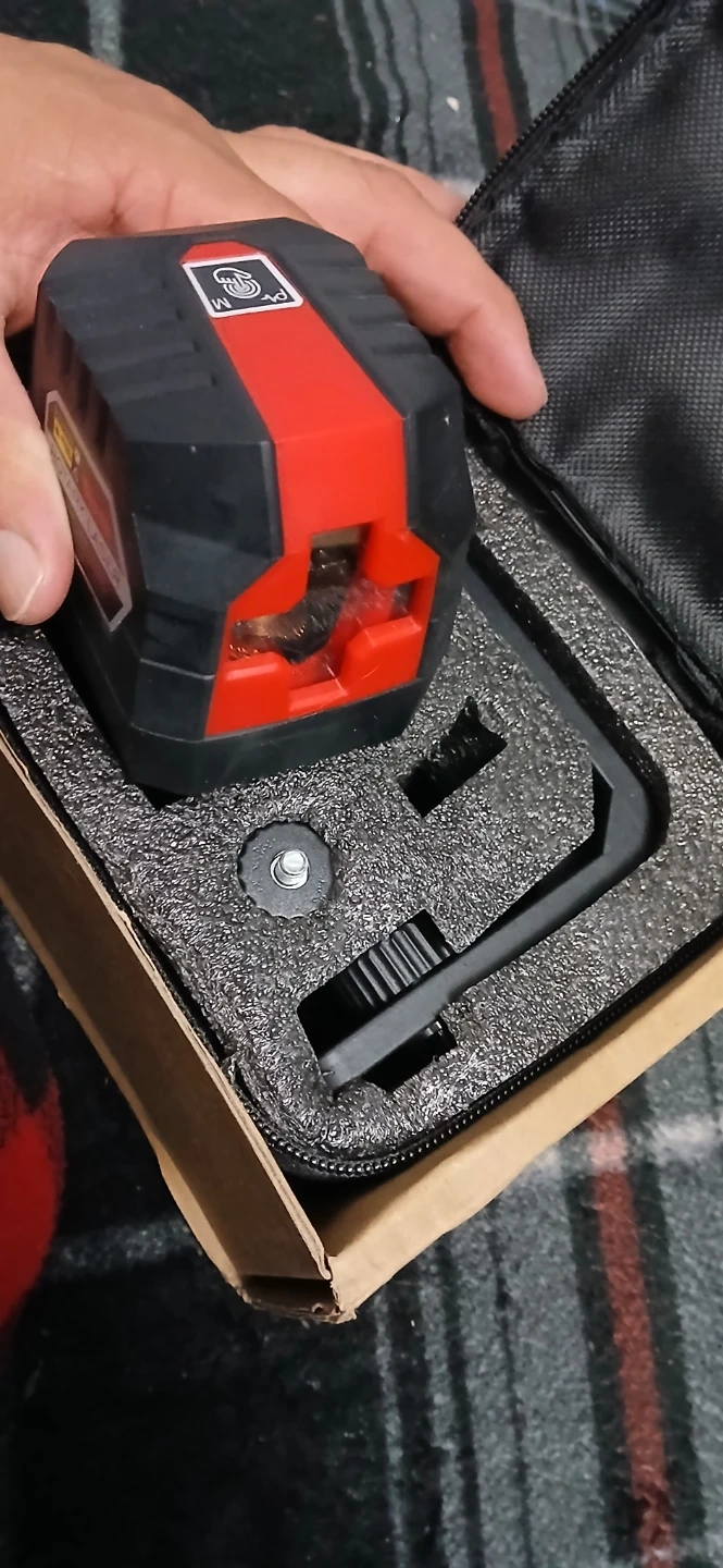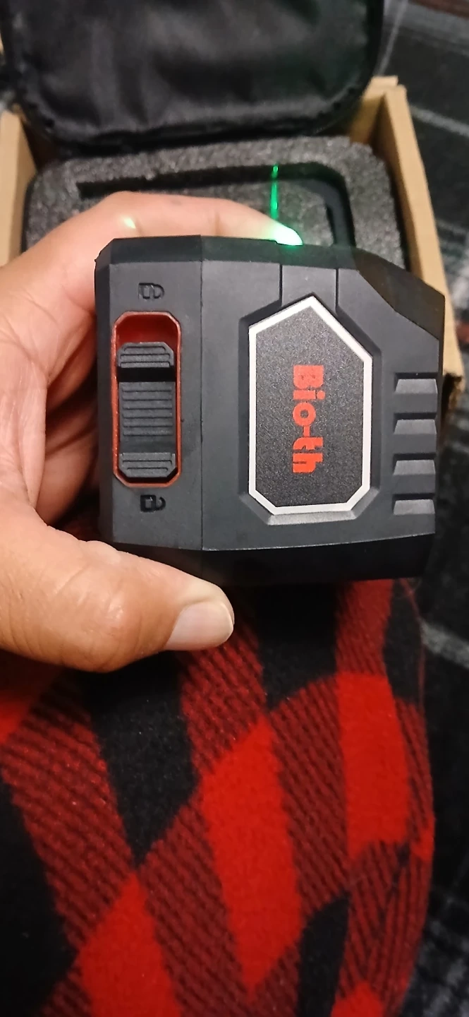 This is a Bio-Th rotary laser level. It's green and comes with its original case and accessories. Includes a bracket and a small tripod adapter.