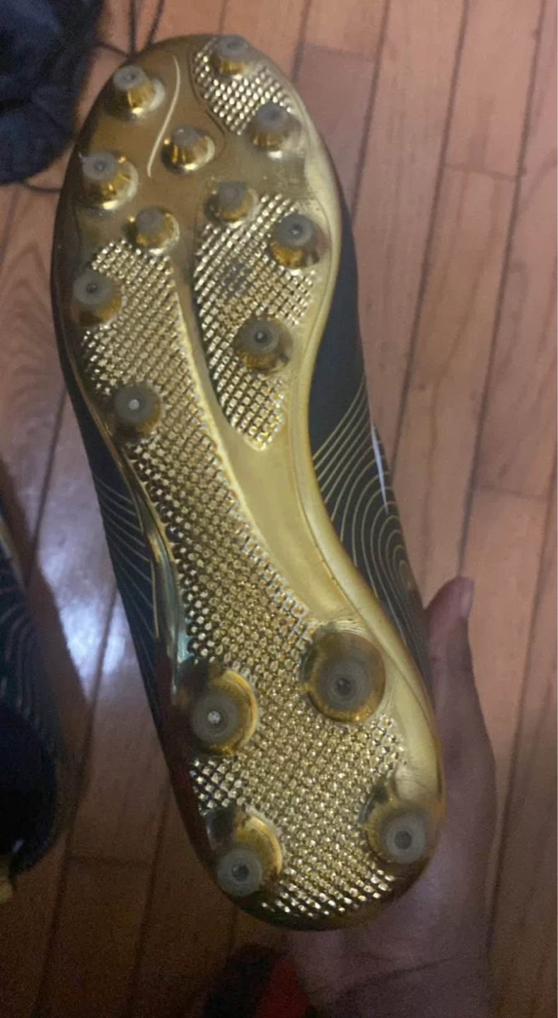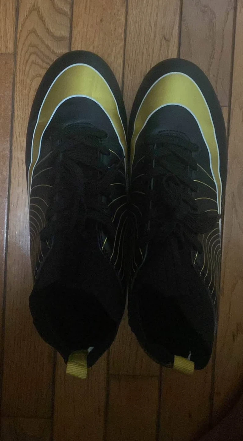 Selling a pair of Soccer cleats in black and gold. They're in good condition and ready for the field!