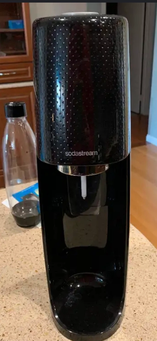 72Black SodaStream Fizzi. Makes carbonated water. Bottle not included. Gently used and the co2 tank CO2 still has some left and I believe you get $15 back for returning the canister.
