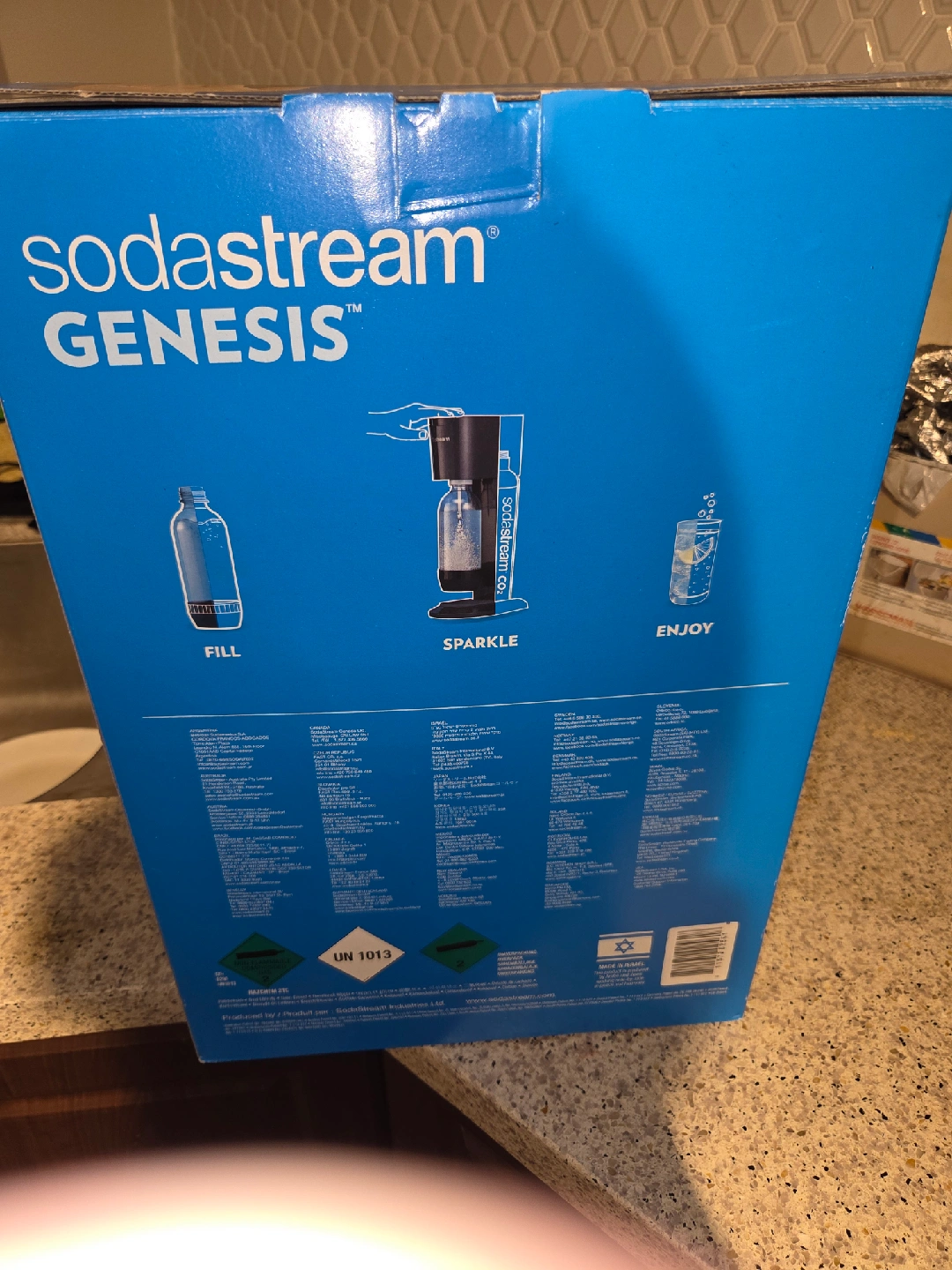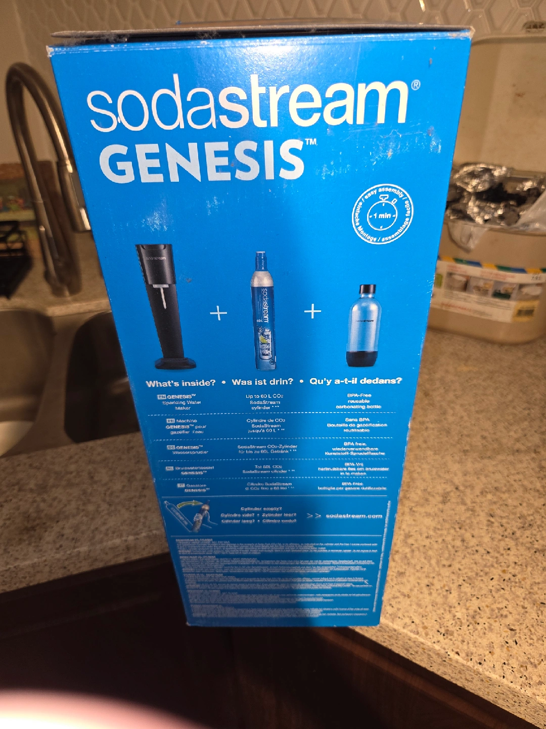 85Get sparkling water in seconds with the SodaStream Genesis! It's super easy to assemble, so you can enjoy fresh, bubbly water in no time. The box includes everything you need to get started