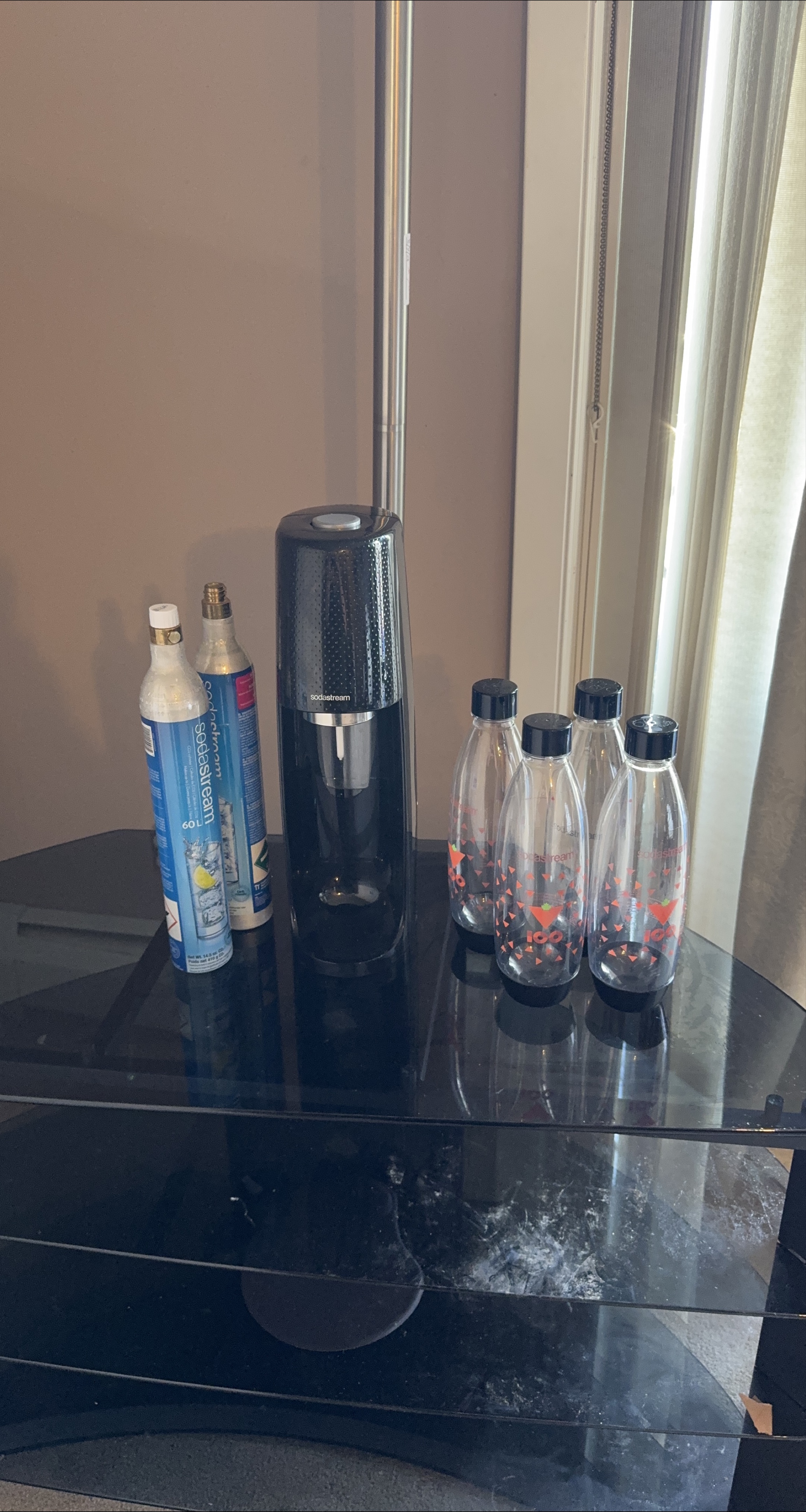 Selling a SodaStream sparkling water maker! It comes with two CO2 cylinders and four bottles so you can start making your own sparkling water right away. Great for making a refreshing drink at home!