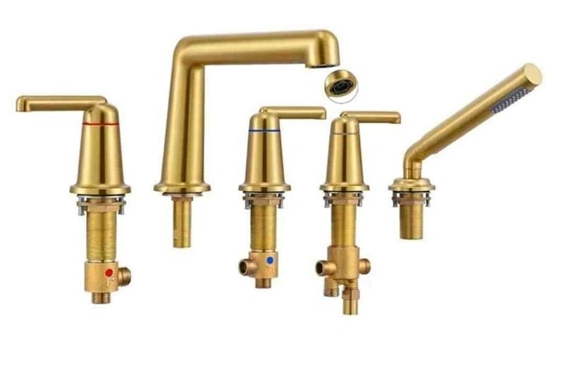 SOEBIZ Roman tub faucet with Hand Shower and Brass Rough-In Valve Brushed Gold, 5 Hole Widespread Deck Mount Bathtub Faucet with Diverter, Elegant and Modern SZ-9909BG -Package Dimensions: 44x33x15cm 20005312 S12