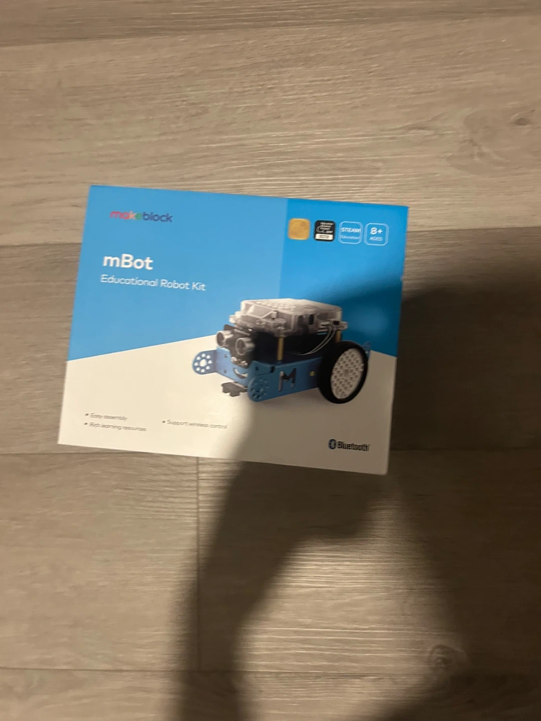 This is the mBot Educational Robot Kit from Makeblock. It's designed for easy assembly and supports wireless control. This kit is suitable for ages 8 and up. Great for learning robotics! Online value is 90$ cad. https://www.amazon.ca/Makeblock-Mechanical-Entry-Level-Programming-Creativity/dp/B00SK5RUQY?th=1&psc=1