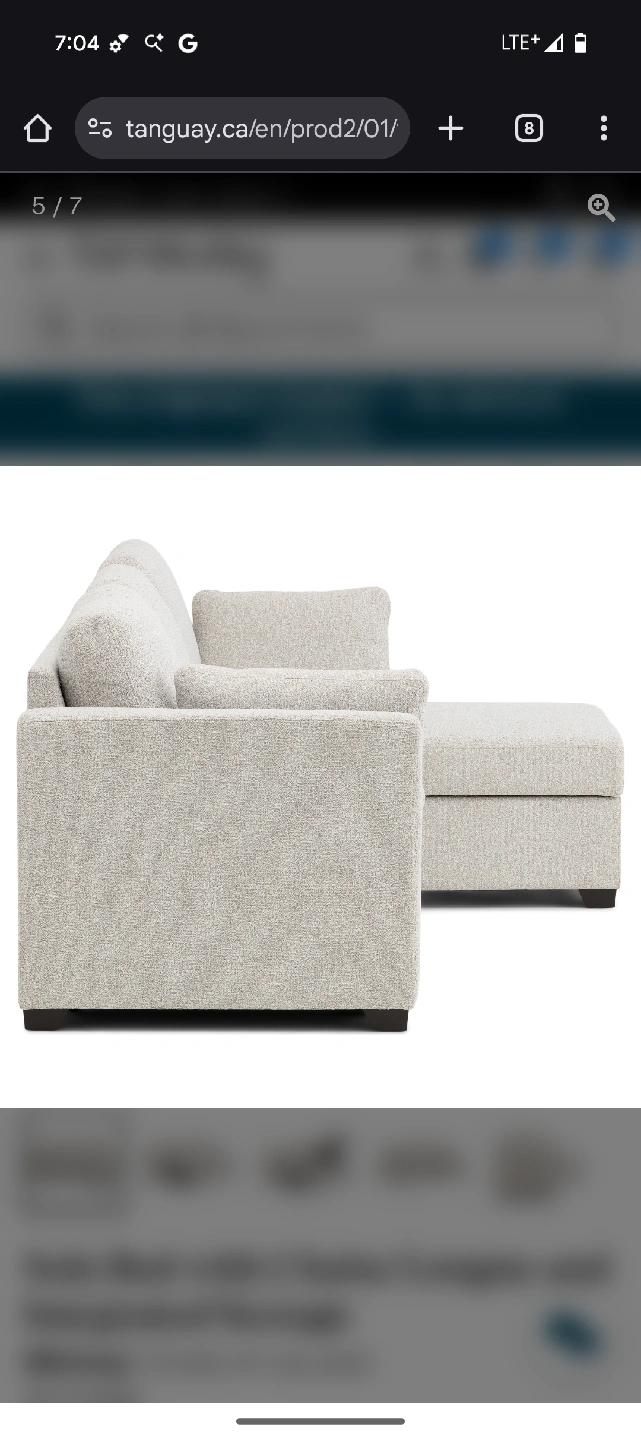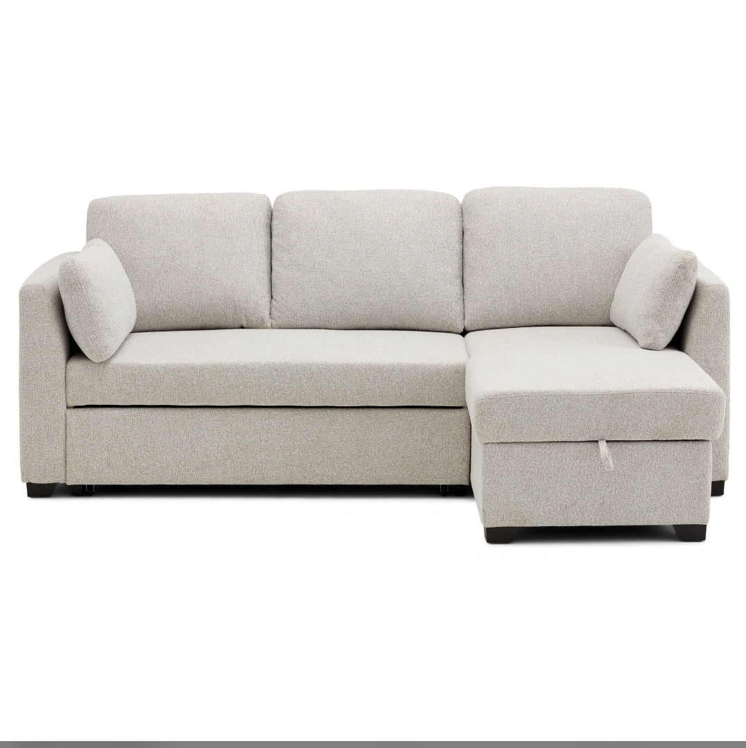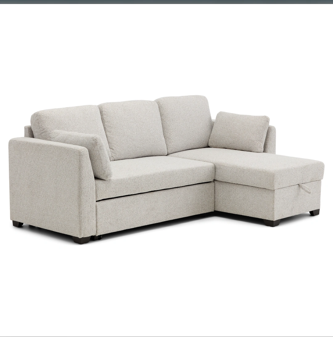 72Sofa Bed with Chaise Longue and Integrated Storage Minhas *ELIAS-PF-01L/02R Price : $1000 Or Better Offer Fully Sealed . This 2-piece sectional sofa, which combines a sofa bed with a chaise longue for storage, defines functionality and comfort. Product Number of seats : 3 seats Ambience and style Style : Modern Origin : Import Collection : Elias Various measurements Sofa Bed Mattress Type : Foam Material and composition Seat Fill Material : Foam Backrest Filling Material : Mousse Body Material : Fabric Upholstery : Fabric Fabric Type : Polyester Decorative cushions included : Yes Number of decorative cushions : 2 cushions Colors and shades Main color : Light Grey Options and finishes Storage Type : Chest Dimensions Packed (in Inches) Length X Depth X Height Reversible loveseat with bed : 22 X 33 3/4 X 49 1/2 Reversible lounger/storage : 16 1/2 X 29 1/2 X 56 1/2 Unpacked (in Inches) Length X Depth X Height : 56 3/4 X 33 1/2 X 37 1/2 : 59 3/4 X 32 1/2 X 37 1/2 Cash Only Door Pick Up
