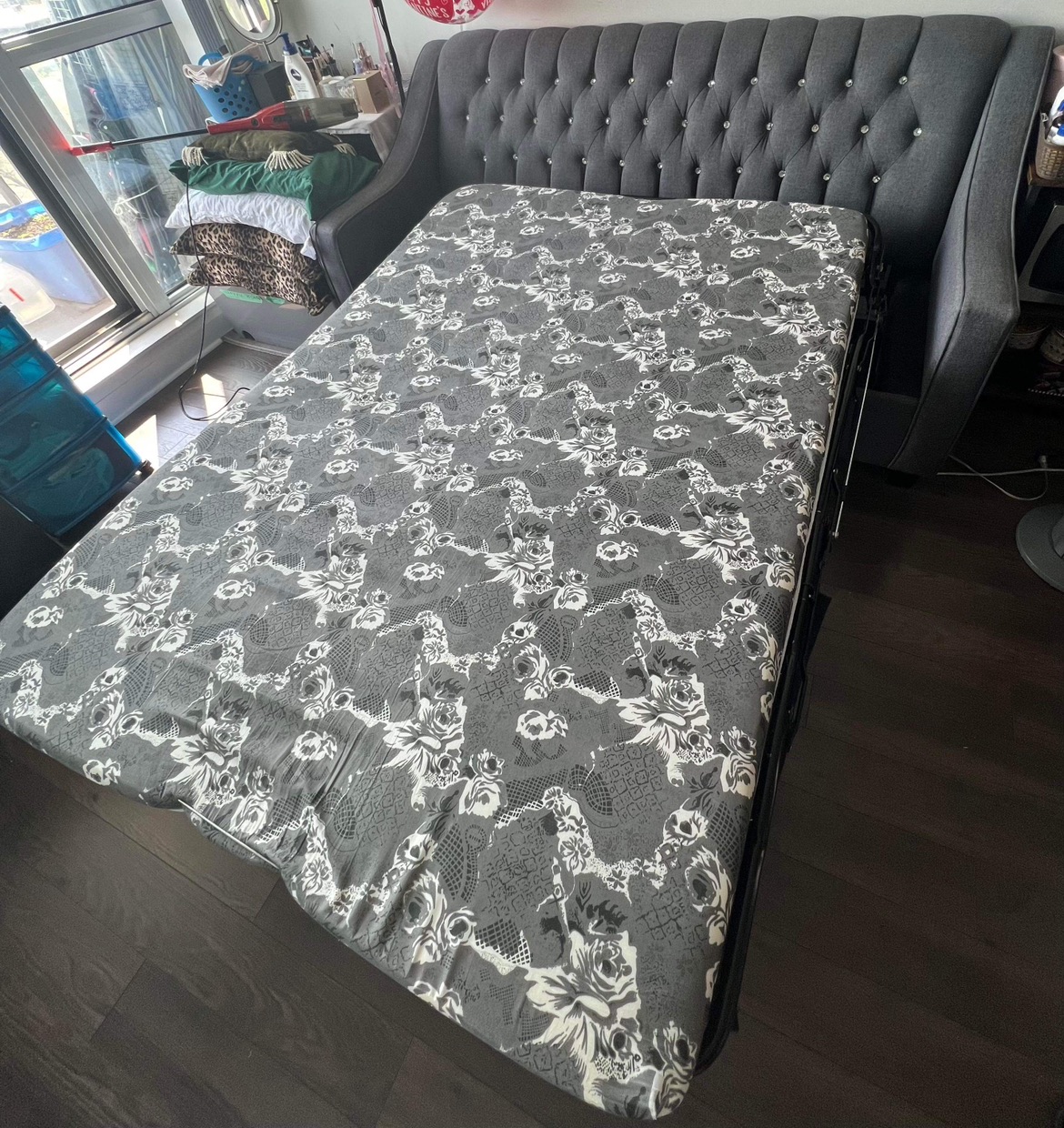Black sofabed with integrated storage