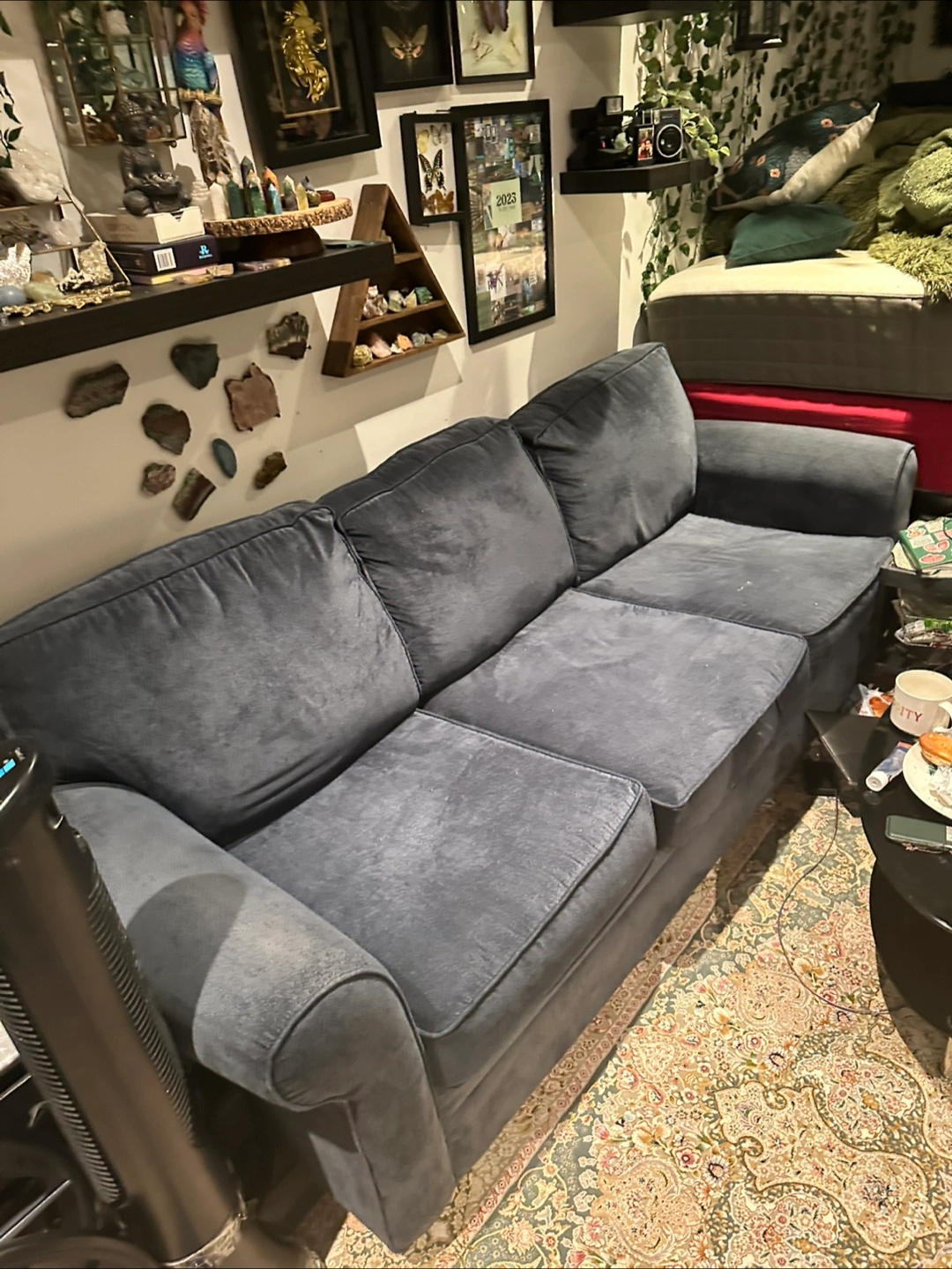 160Selling a comfy blue three-seater sofa! It's in new condition and has been completely washed by professionals washing sofa company ready for a new home. Perfect for lounging and relaxing after a long day. The cushions are nice and soft, making it a great addition to any living room easy to wash and clean No delivery pick up only please contact if you are going to purchase