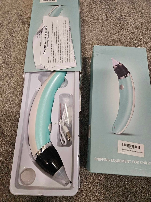 Keep your little one's nasal passages clear with this new electric nasal aspirator! It's designed with five adjustable suction levels, ergonomic design, and food grade silicone tips to ensure safety and comfort. The aspirator is easy to clean and operate, making it a must-have for every parent. Specifications: * Five levels of suction. * Ergonomic one-hand operation. * Food-grade silicone tips. * Easy to clean. Looking for a way to make baby care a bit easier? This is it! And yes, if the ad is up, it's still available!